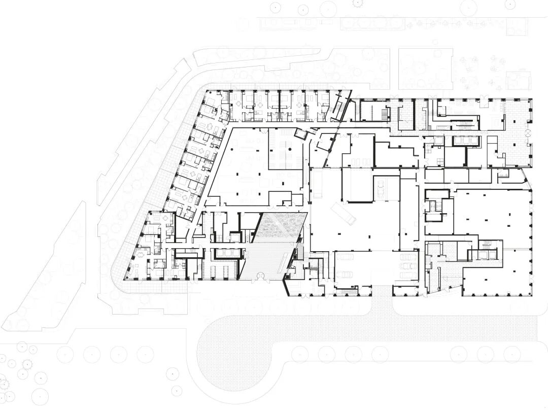 该项目为 Greenpoint 的 Eagle Street 和 Dupont Street 提供了点睛之笔,这两条街已经通过该地块延伸至东河边。这个区域现在以一个新的广场和滨水平台的形式向公众开放。住宅塔楼和街道上的干预措施共同预示着该地区后工业化边缘的转变,延长了布鲁克林持续开放的滨水区。