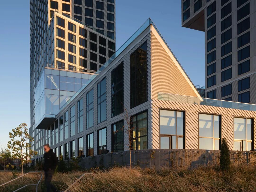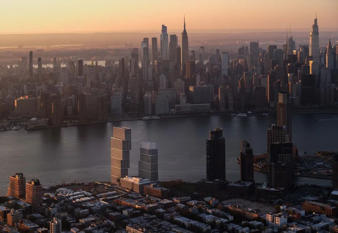 OMA 的 Eagle + West 综合体位于布鲁克林滨水区的最北端,以激活布鲁克林和皇后区之间的新枢纽点。这个独特的位置使居民能够进入热闹和不断增长的 Greenpoint 社区,同时从一个前所未有的角度欣赏到曼哈顿的天际线和布鲁克林的屋顶。