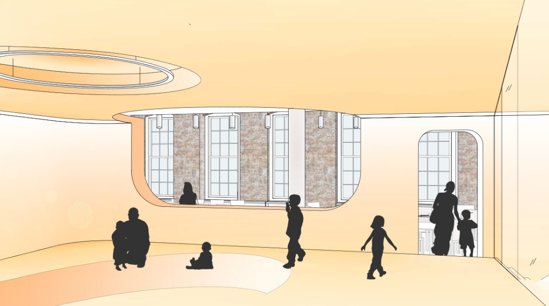 室内围绕着一个多孔展亭展开,设置了一系列的开放空间,使孩子们可越过主阅览室看到外侧的曼哈顿天际线、东河和布鲁克林大桥公园。