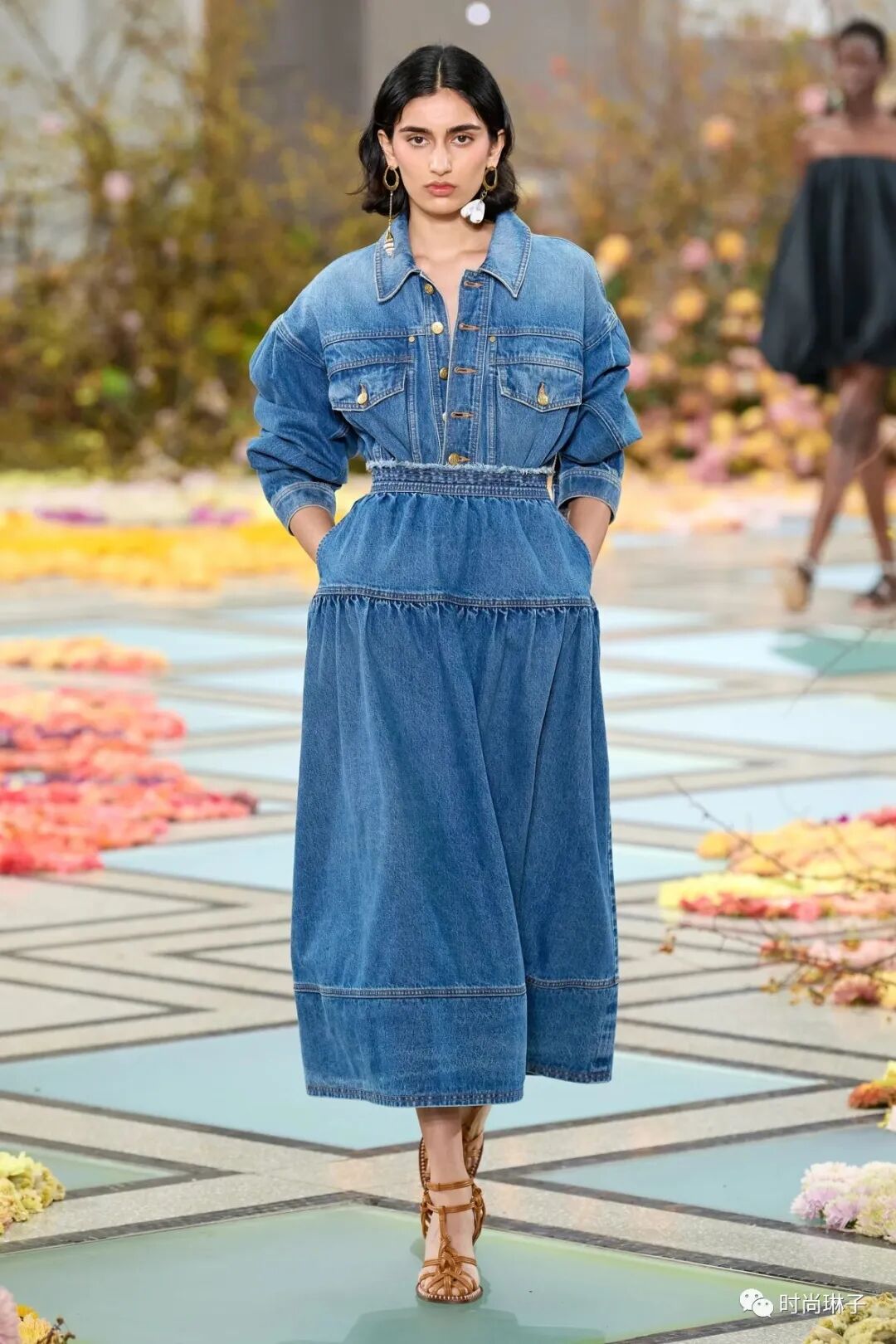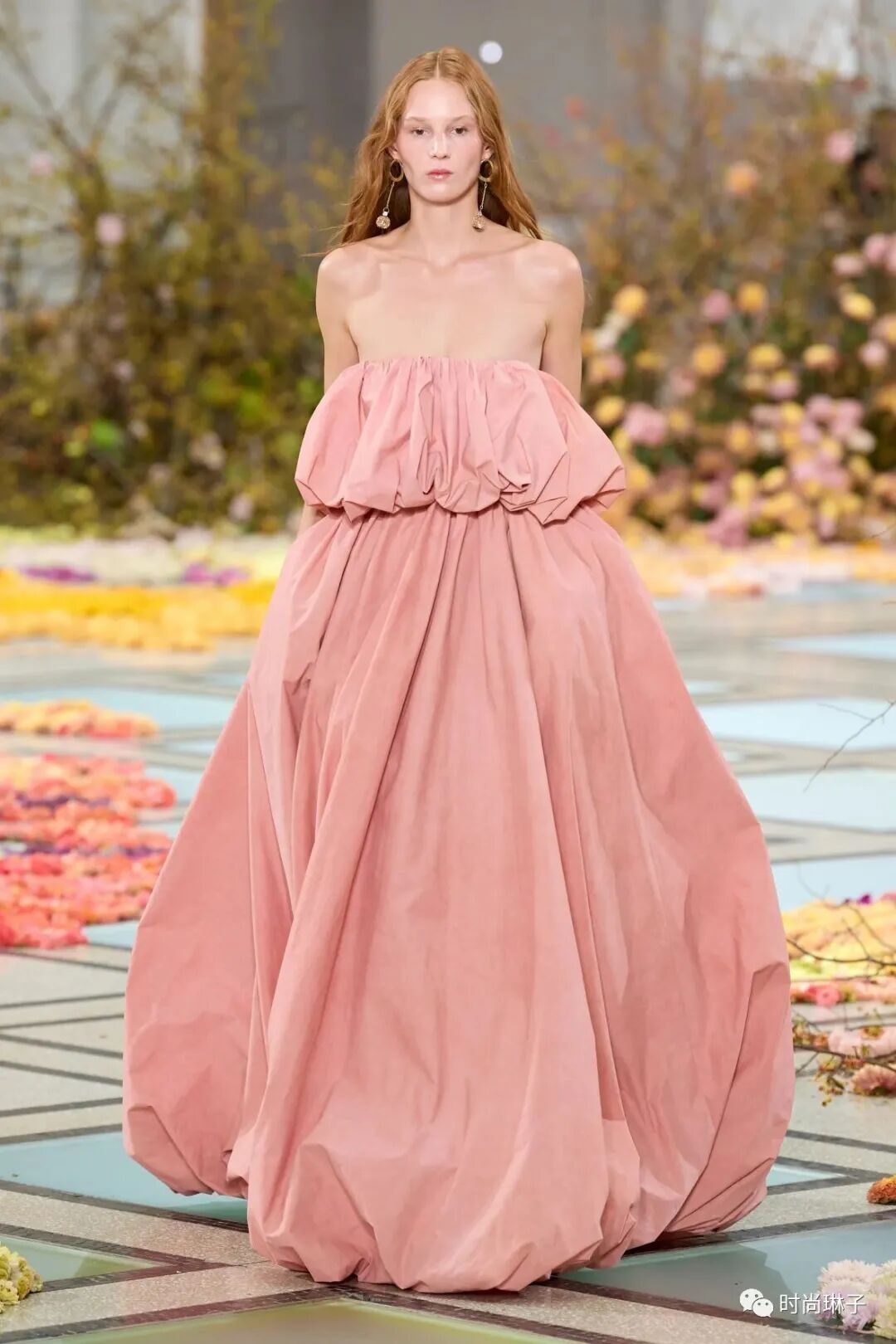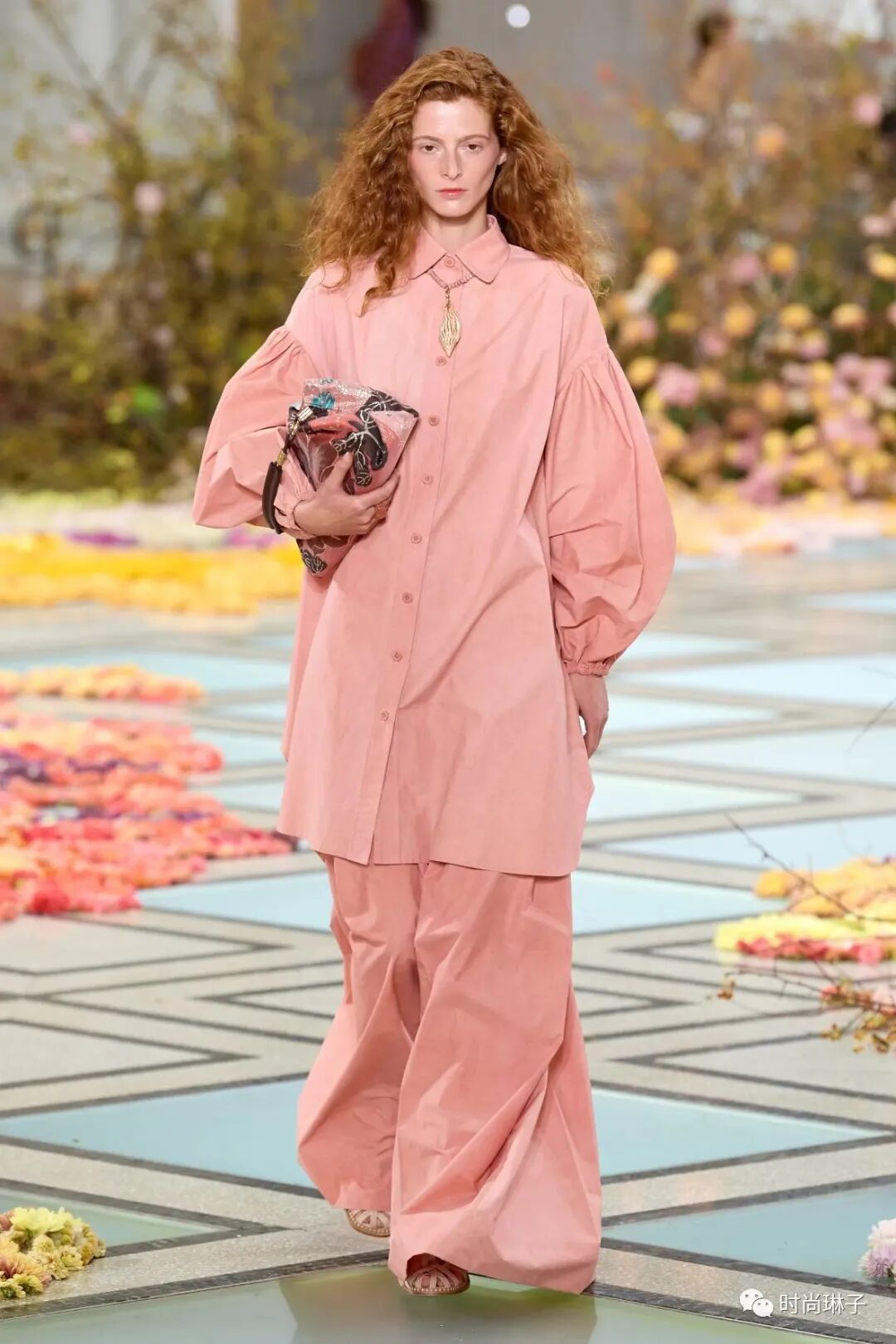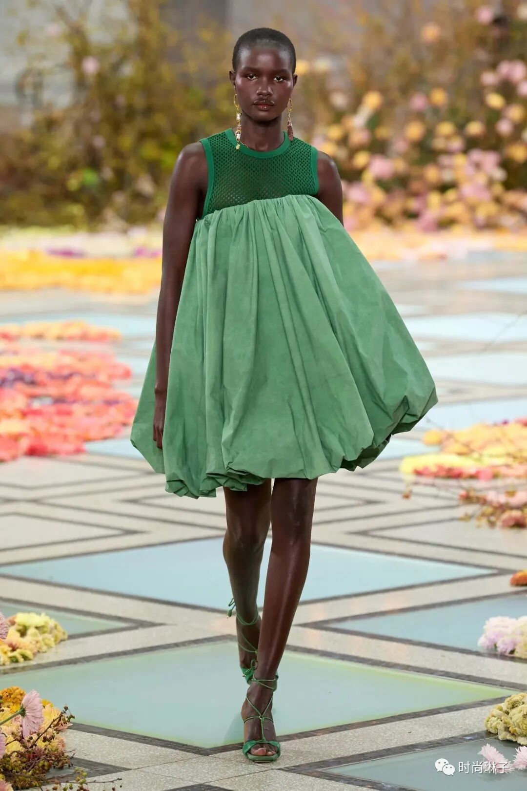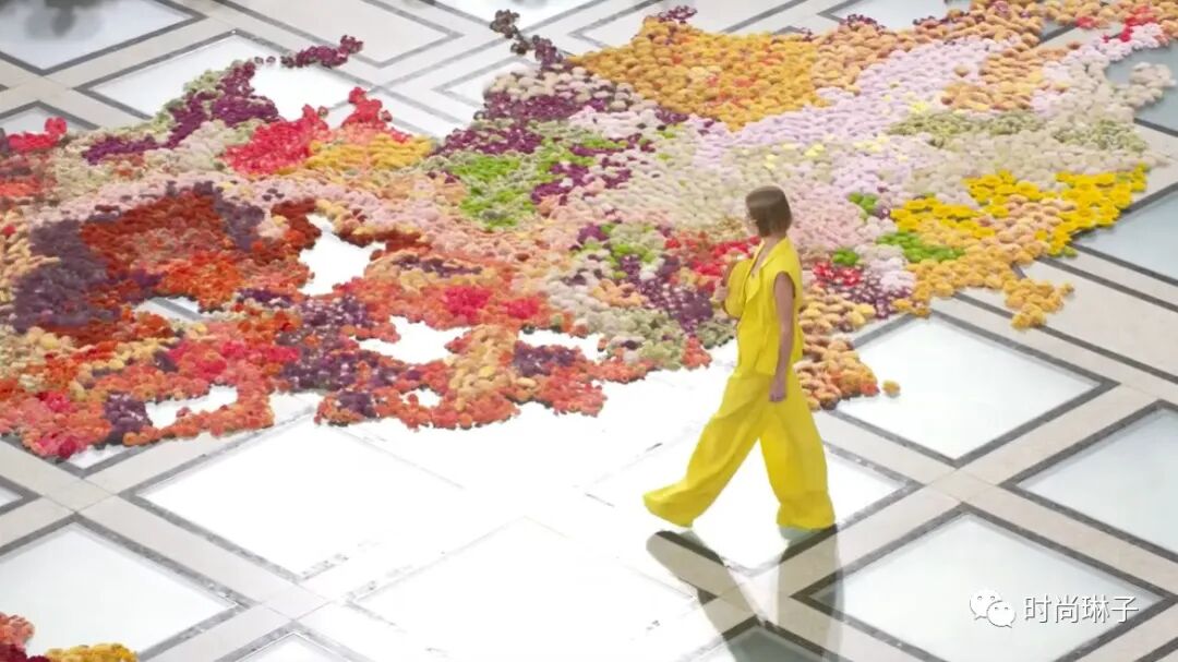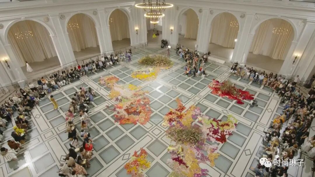 该季虽然选址博物馆,但充满生机的鲜花绿植依然不可或缺,Emily Thompson的美丽花卉装饰着馆内大厅,为2023春夏大秀增添了几分浪漫的唯美诗意。