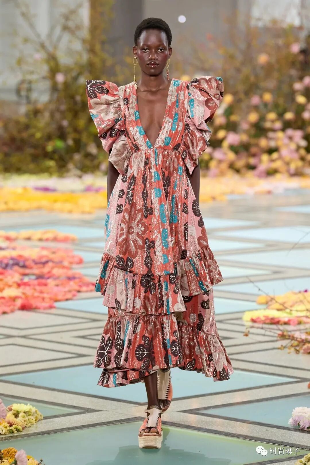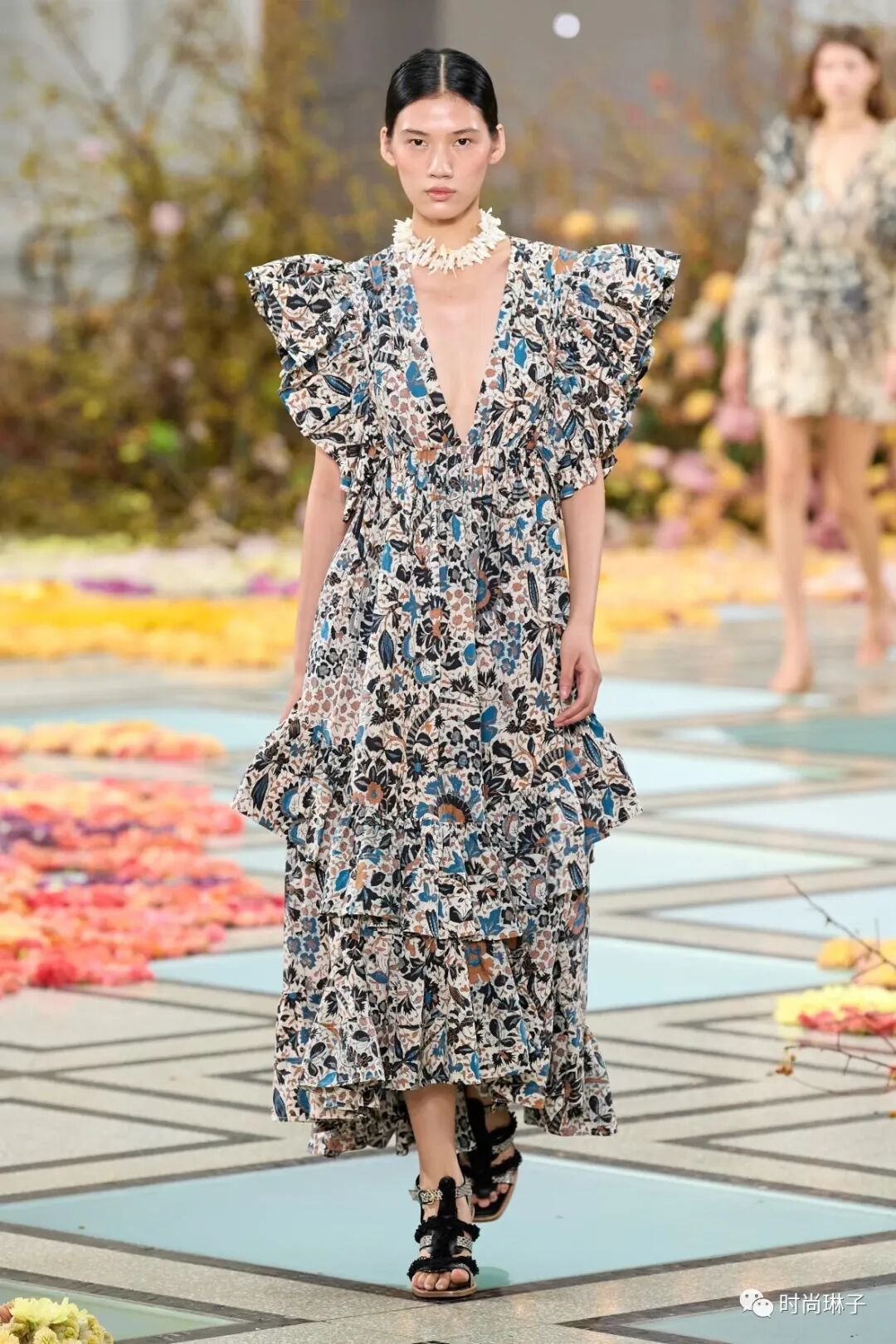 Ulla Johnson 2023春夏系列延续了品牌标志性的荷叶边以及花卉印花元素。