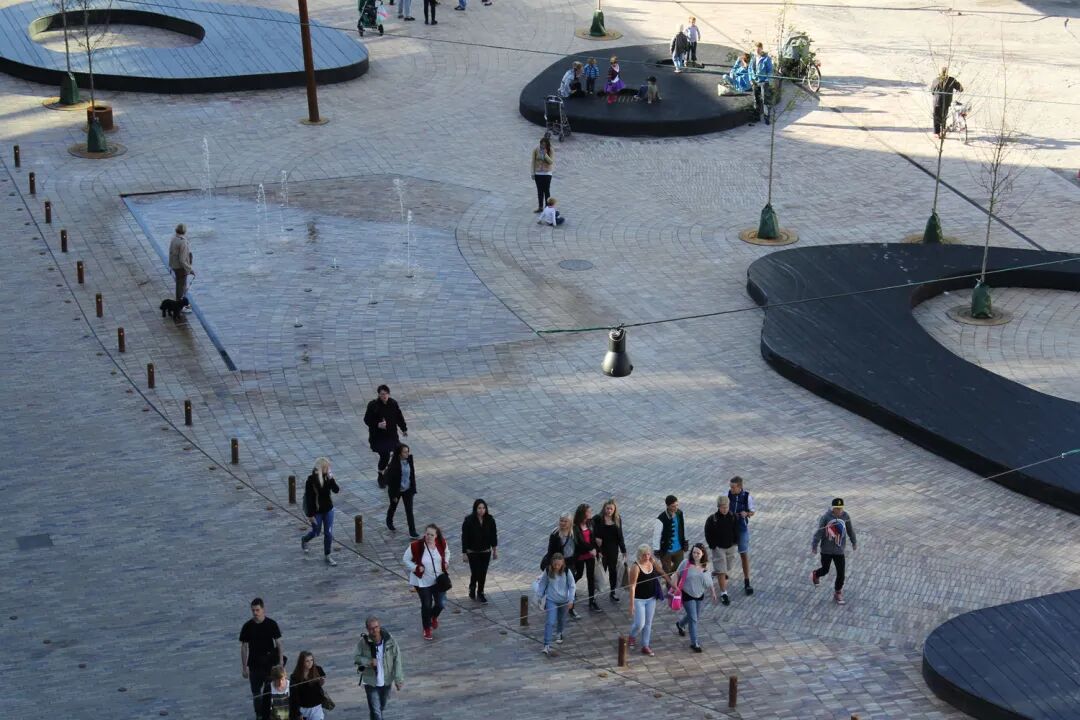 暖黄色的砖铺面是欧登塞公共空间中最具有辨识度的材料。它以一种奇妙的方式将城市联系在一起,并讲述了传统和质量意识。