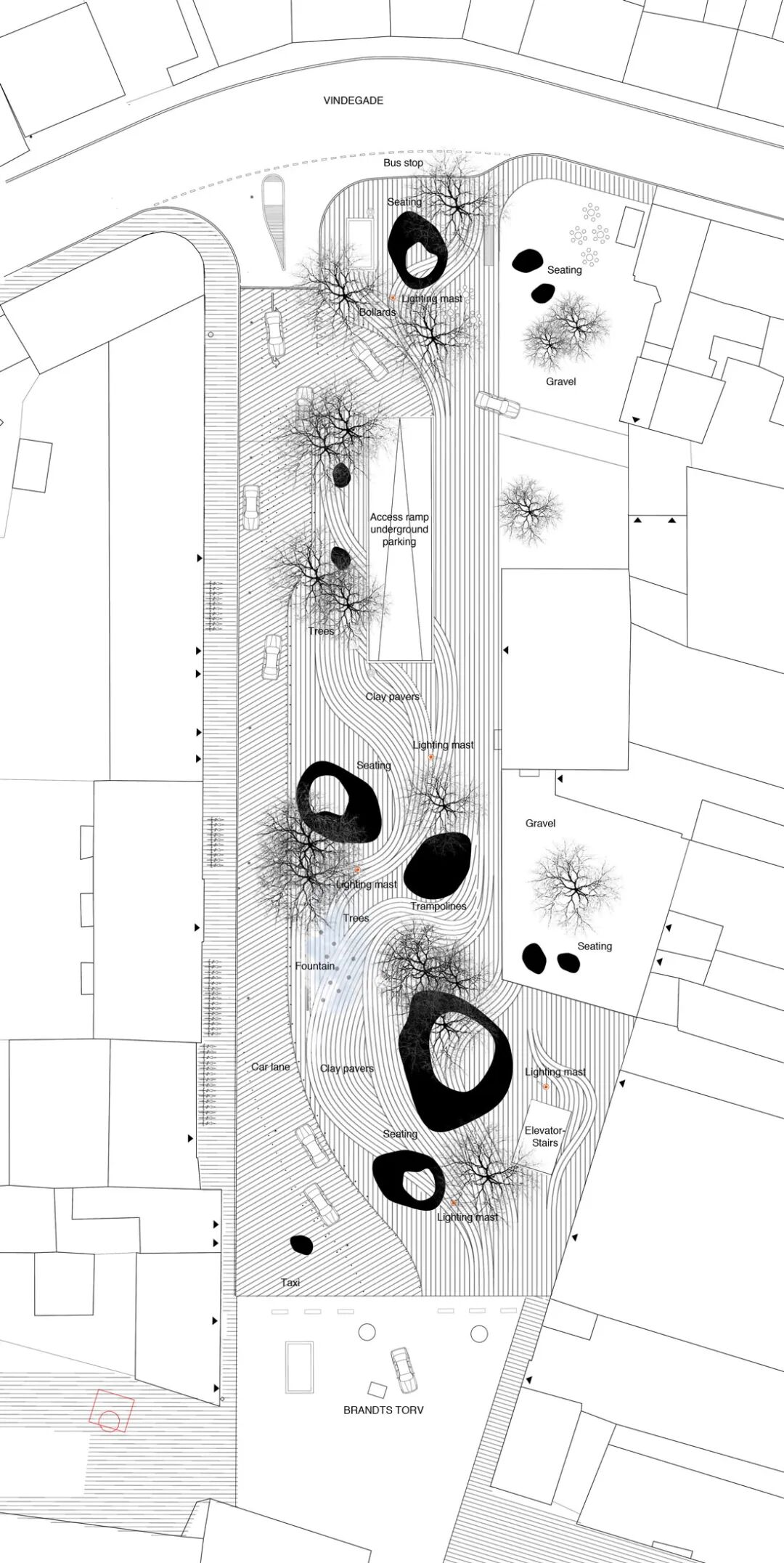 在欧登塞,砖用于许多不同的铺面,并且有各种各样的图案和结合。我们想挑战经典砖块,并以一种创新的方式展示这种熟悉的材料。