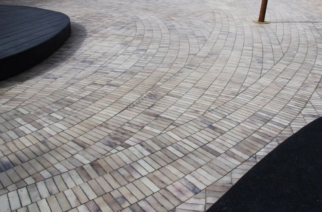 在Grønnegade广场,经典的砖材料通过引入大的波浪状图案形成装饰铺面,赋予不规则的触感——作为广场功能的基础。