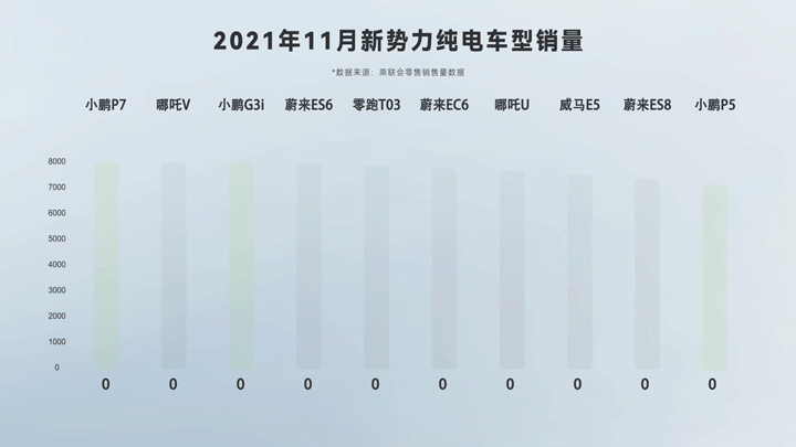 观点的正确与否很难在短时间内做出判断,但我们可以从造车新势力的销量看出市场趋势。11月,在乘用车销量整体大幅下滑的大背景下,造车新势力销量逆势上涨,其中小鹏汽车总销量15613辆,连续三个月实现单月销量破万,环比增长54%,同比增长270%,位列造车新势力第一位;而旗舰车型小鹏P7单车销量7839辆,环比增长30%,领先新势力纯电车型。