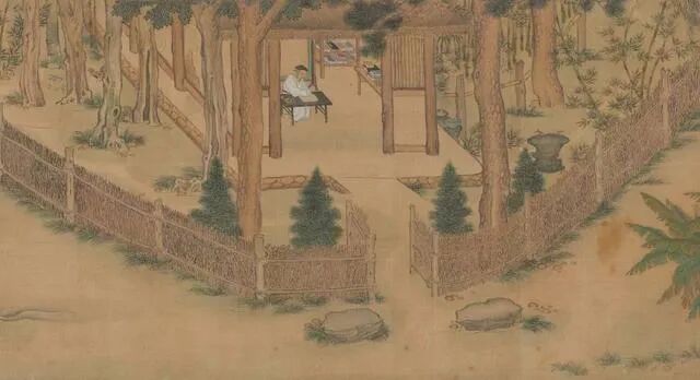司马光写书的地方,就在独乐园的读书堂。在《独乐园记》中,他依次记录了弄水轩、读书堂、钓鱼庵、种竹斋、采药圃、浇花亭和见山堂共七处景致。900 多年过去,这个园子已经不在,其大致状貌,我们只能透过明代仇英画出的《独乐园图》了解一二。