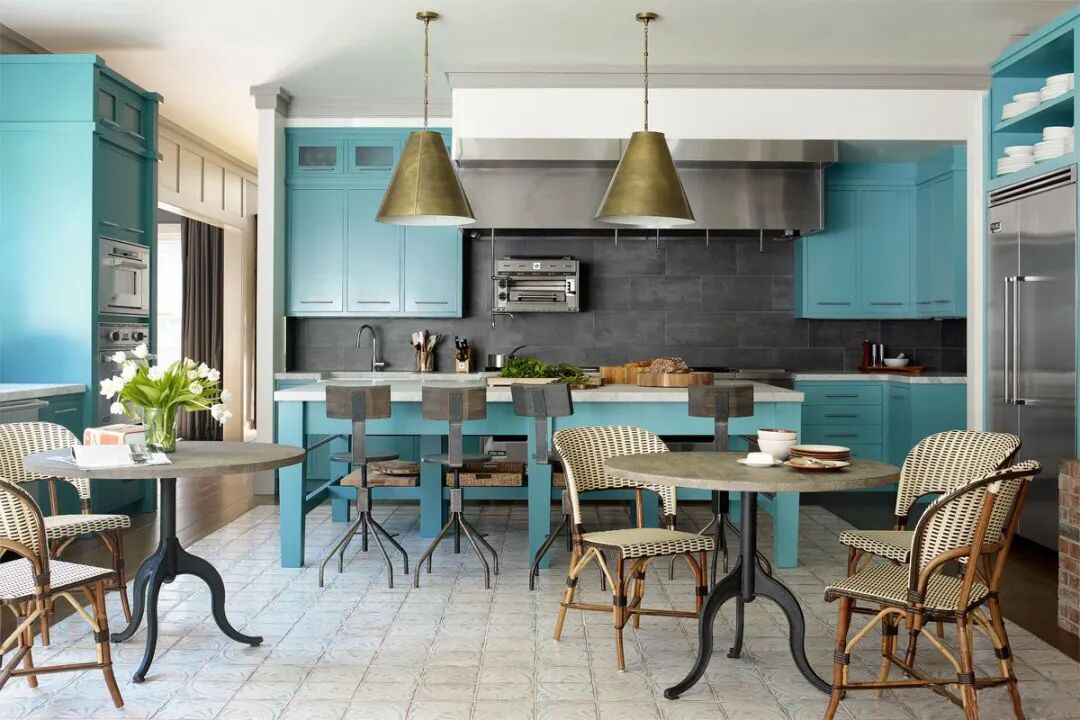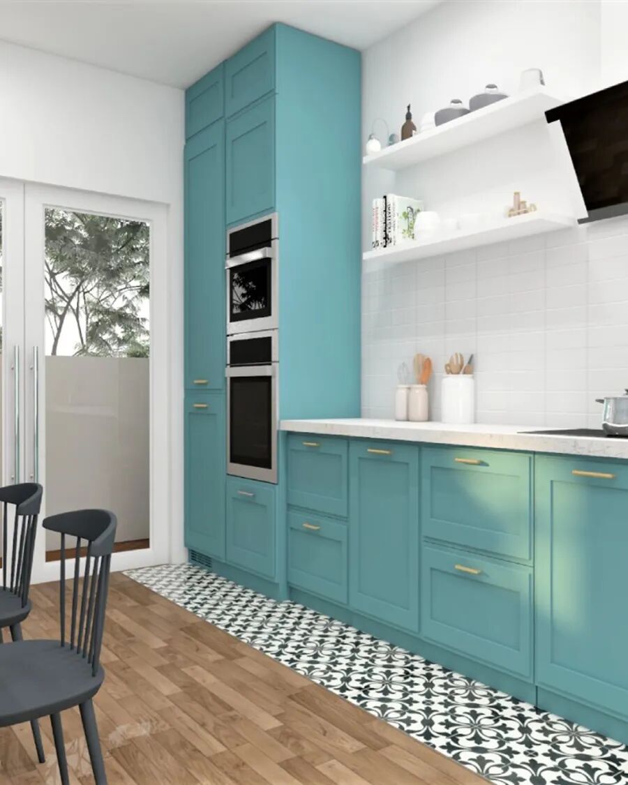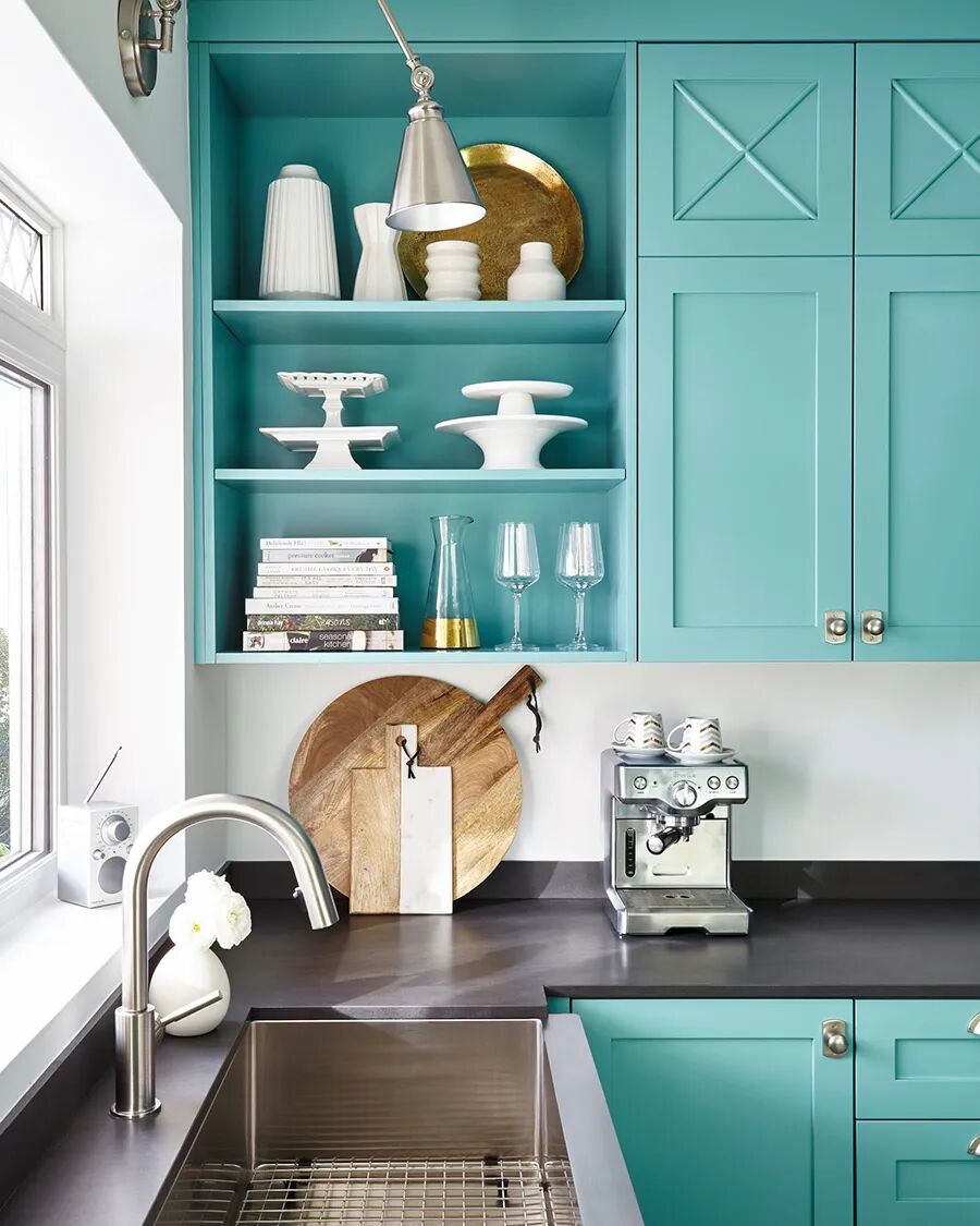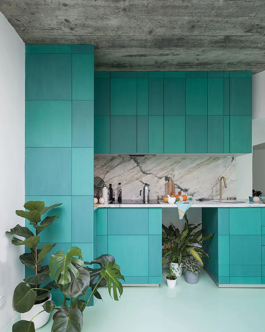 大面积的松石绿给人扑面而来的清新感,小面积的它作为空间的点缀色也非常养眼。