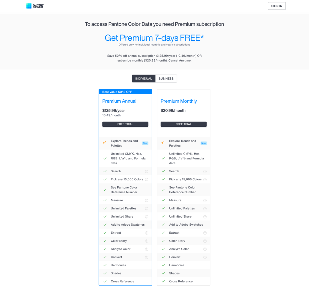 但近期,由于Adobe和潘通之间的授权政策变化,原本在Adobe的产品中内置的潘通颜色以后需要用户专门为其付费,阅费用为$20.99/月,或$125.99/年。