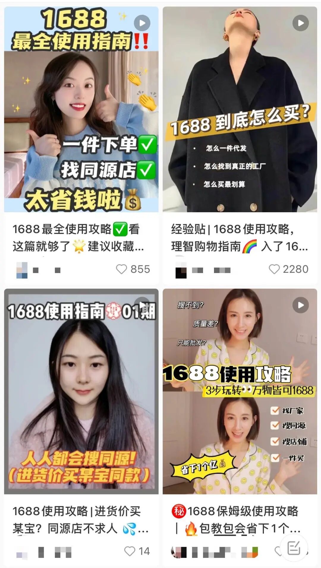 博主们为了流量拼命“内卷”,却无形中成了1688的“自来水”,引导越来越多消费者涌入1688选购,再回过头来在内容平台上分享,形成了一个“种草”的闭环。