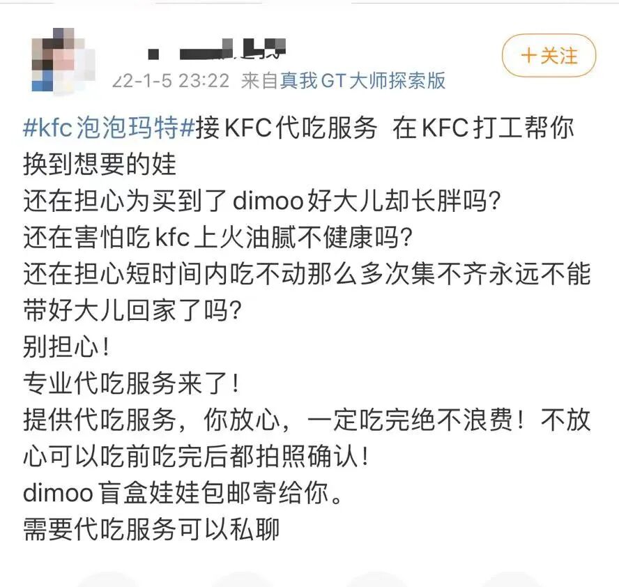 更直接的方式出现了,肯德基代吃。“娃归你,鸡归我”。在各大社交平台上,不少用户发出了可以代吃接单的帖子。