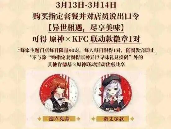 肯德基代吃服务已经又很多年了,上次还是在2021年3月国产手游《原神》和肯德基的梦幻联动中。