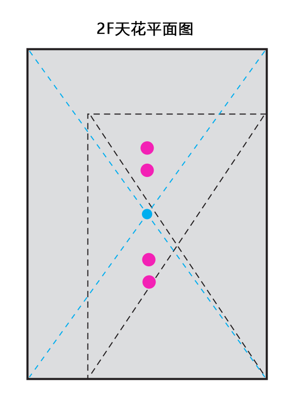 2、二层天花筒灯B(紫色),以二层镂空间中心布置;