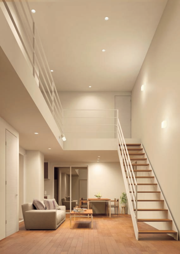 3、楼梯上方墙壁表面壁灯,照亮楼梯台阶;