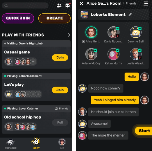 Yahaha 除了定义为 UGC 平台外,还补充了社交娱乐平台属性(UGC Social Entertainment Platform)——Yahaha 拥有身份形象编辑系统与社交讨论系统,社区成员可以互相连麦探讨创作,也可以邀请好友共同探索。