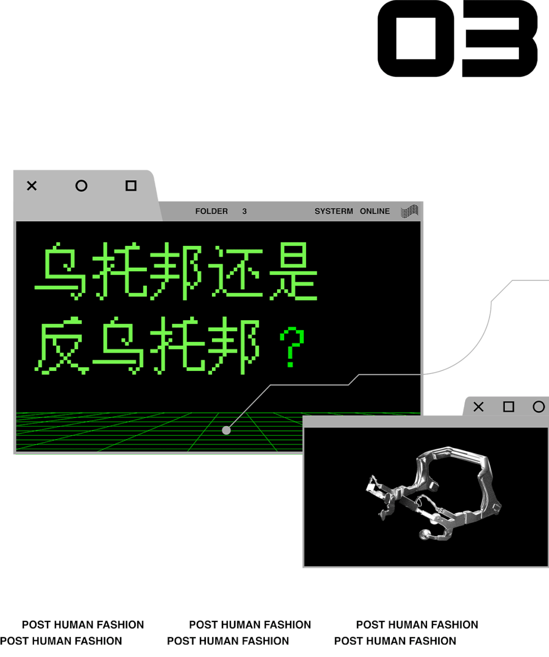 很难说未来是会去向哪一个方向,但是我在“后人类”时尚中找到了另一个中间的可能性,未来可能会是两极世界,却正是因为“人”已“非人”, “后人类”真正令“人类”获得了一个他者,去解构性别、种族、阶级,重新审视和讨论“美”、“时尚”和一切议题。