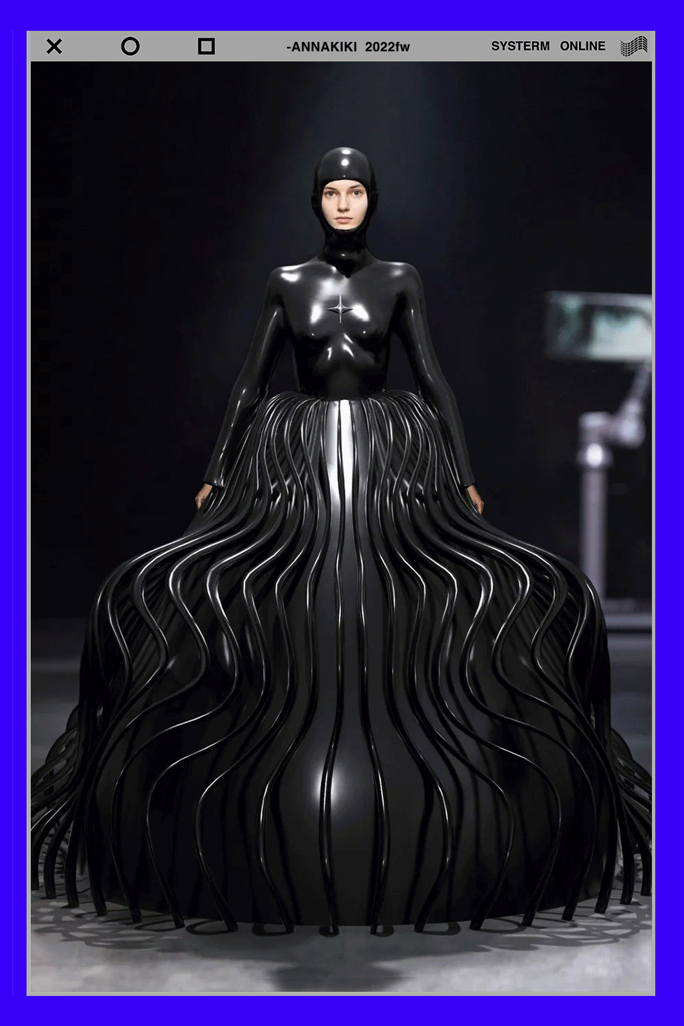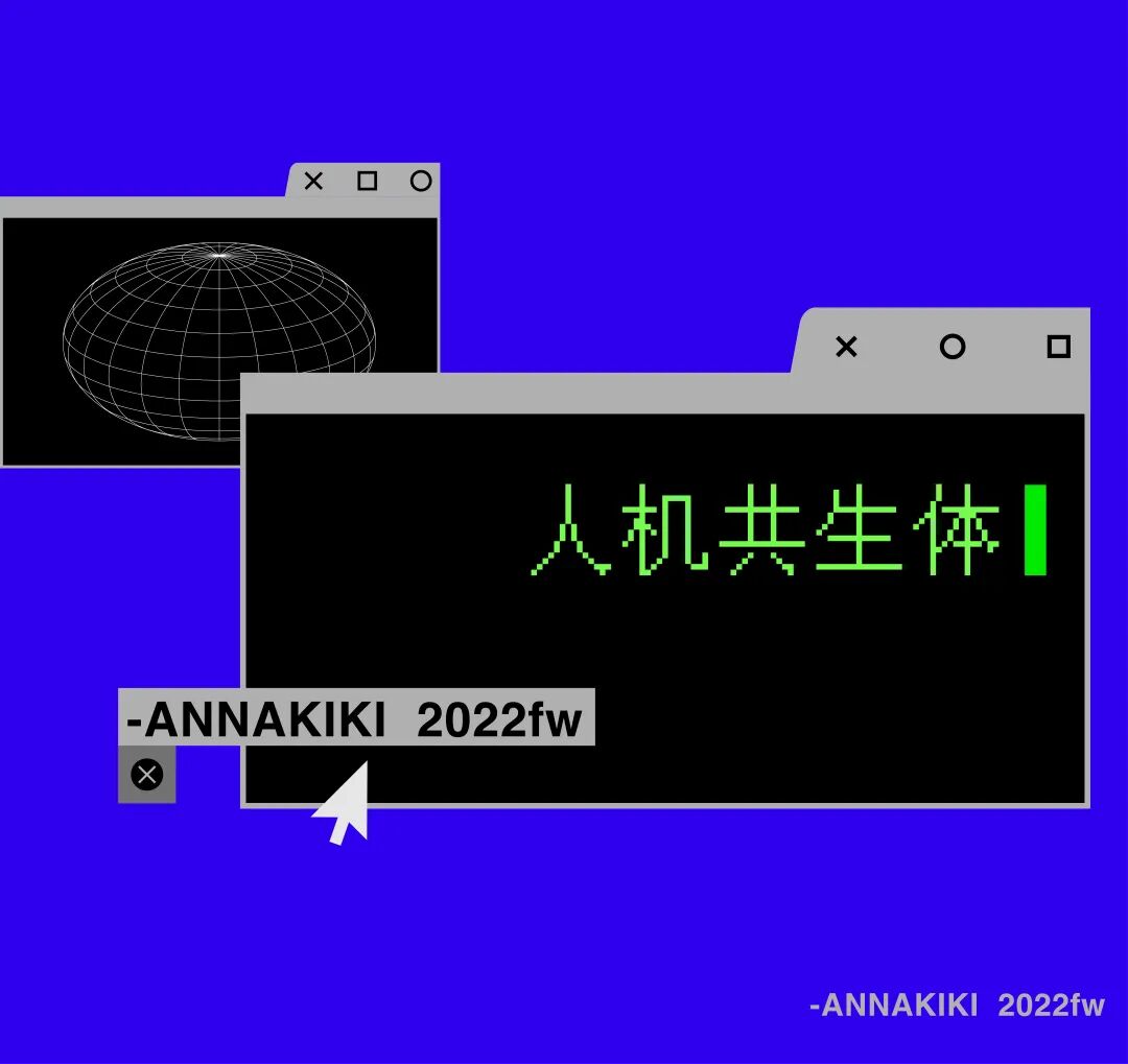以<后人类编码 POST-HUMAN CODE>为主题,ANNAKIKI 2022秋冬系列灵感来源于拥有机械身体的电影主角阿丽塔,将人机共生的理念融入设计中。夸张的不规则流体结构廓形,模糊了人体曲线,仿佛共生的机械外壳;长而及地的oversize大衣,呈现出机械增强版的“后人类”;而细胞、电路印花,是人类被编码被改造过的印迹。设计师Anna Yang 提出 “赛博格呈现了人机共生的理念,其更深远的意义在于让生命有了更久远的延续。” 延续此概念,ANNAKIKI同步将这一系列编码成为NFT虚拟服装,开启 “元宇宙”计划。