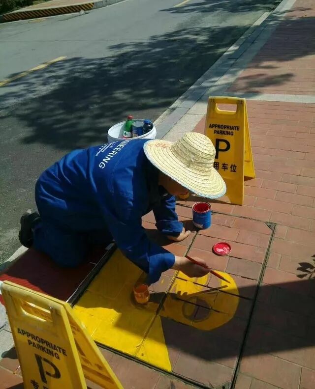 用画笔给小区的井盖穿上了新衣