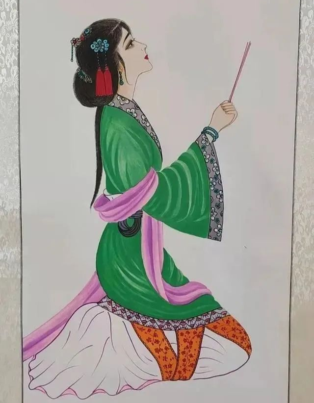 她画的古装美女婀娜多姿