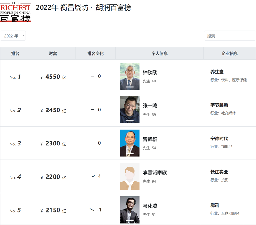 日前,胡润研究院发布了《2022胡润百富榜》,其中,农夫山泉创始人钟睒睒以4550亿元的财富值再度蝉联中国首富,力压马云、马化腾等一众大佬。