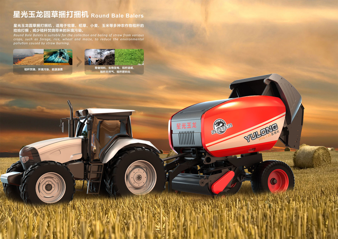 星光玉龙圆草捆打捆机,是一款适应于牧草、稻草、小麦秸秆、玉米秸秆等多种农作物秸秆的捡拾打捆装备。这是一台智能化的现代农业装备,设计人性、前卫、美观。采用智能化管理和控制,控制终端操作异常简便,具有良好的人机工程设计,显示器可以读取打捆压力、送网提示和草捆数量等数据,还可以关注传感器、阀门状态等,智能化程度高。