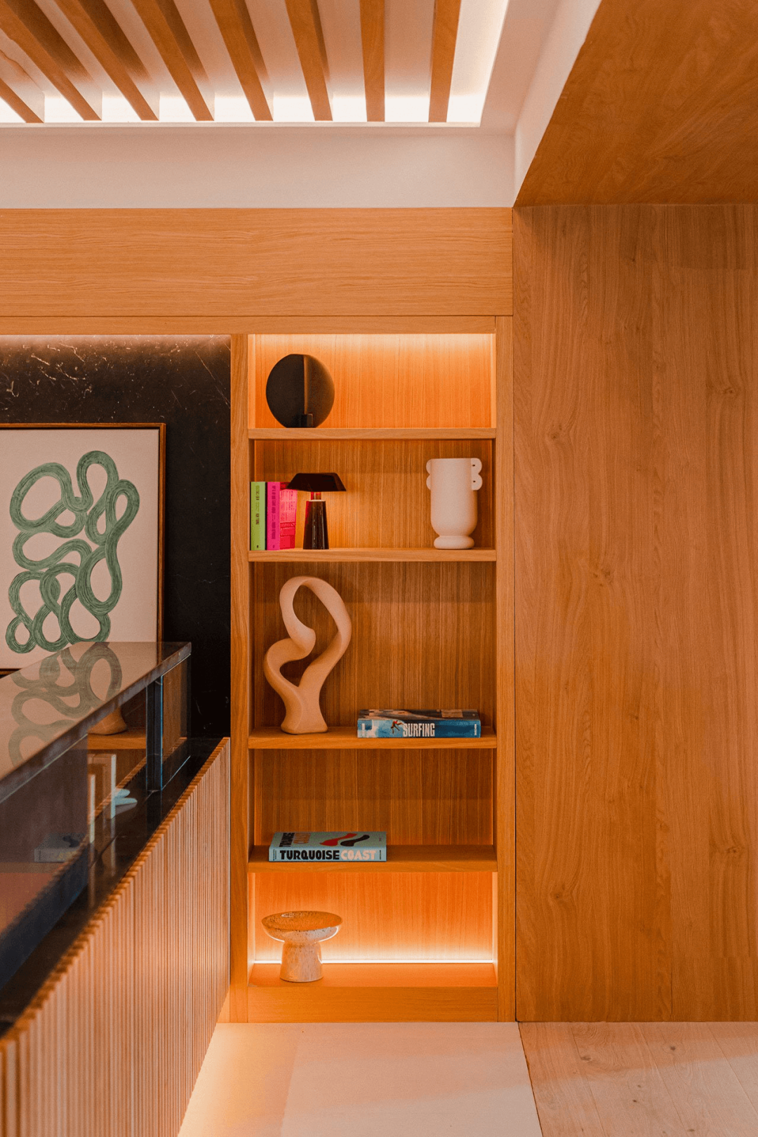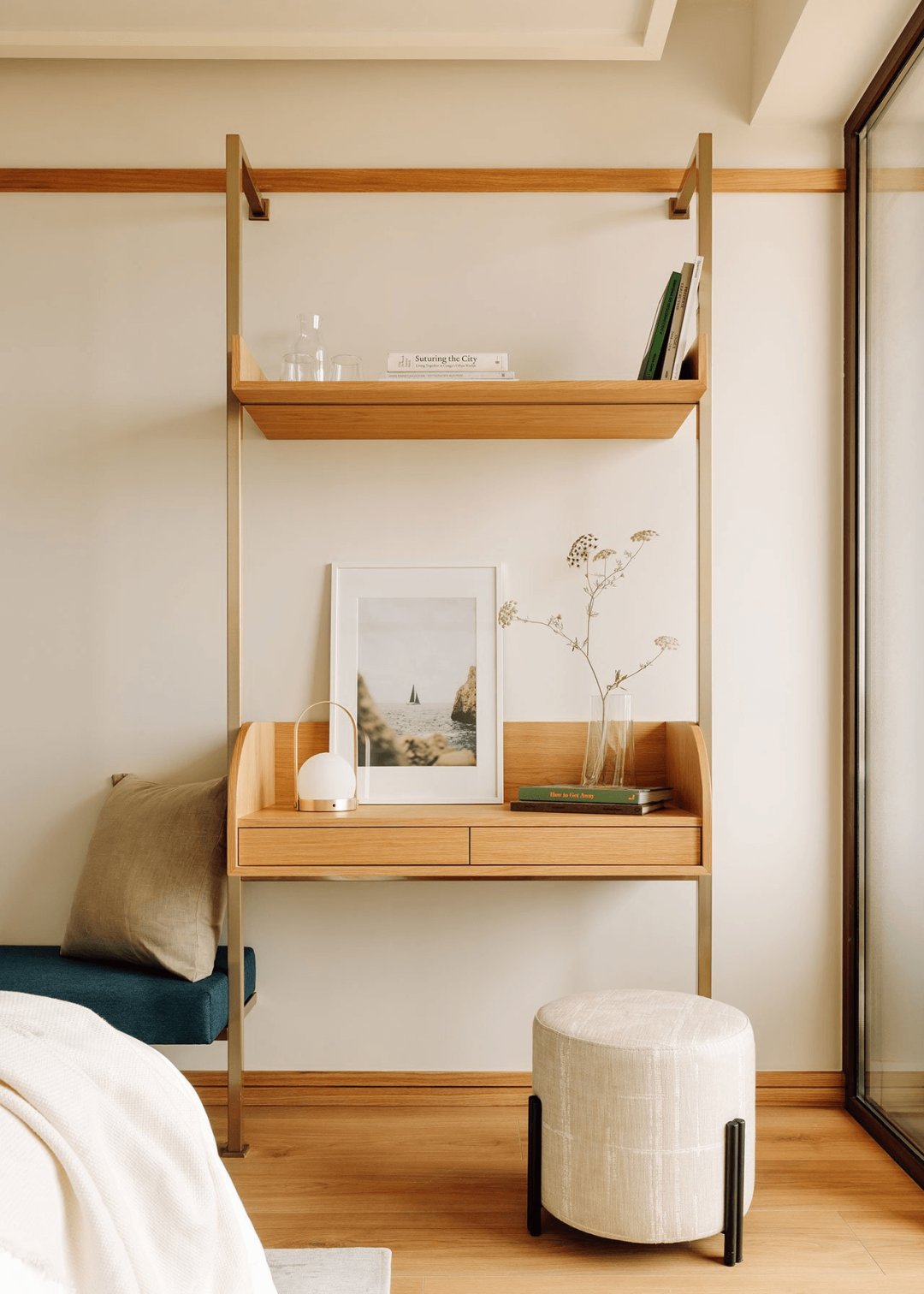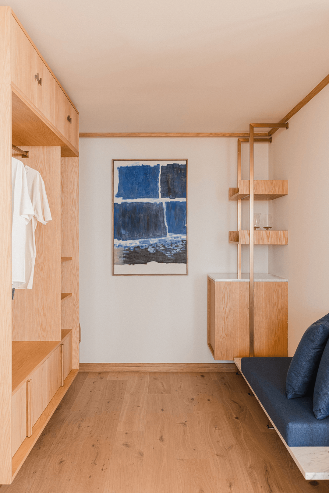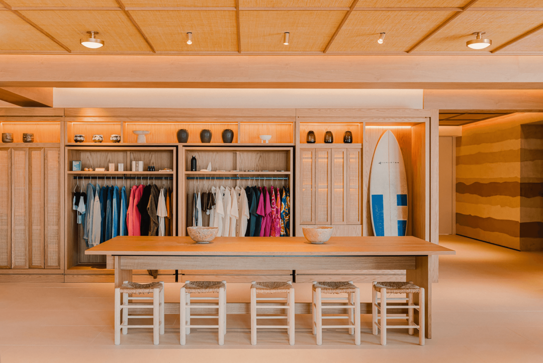 设计师将斯堪的纳维亚极简主义与乡土工艺与现代冲浪风格相结合,让个各种材料运用到空间中,融合在一起。