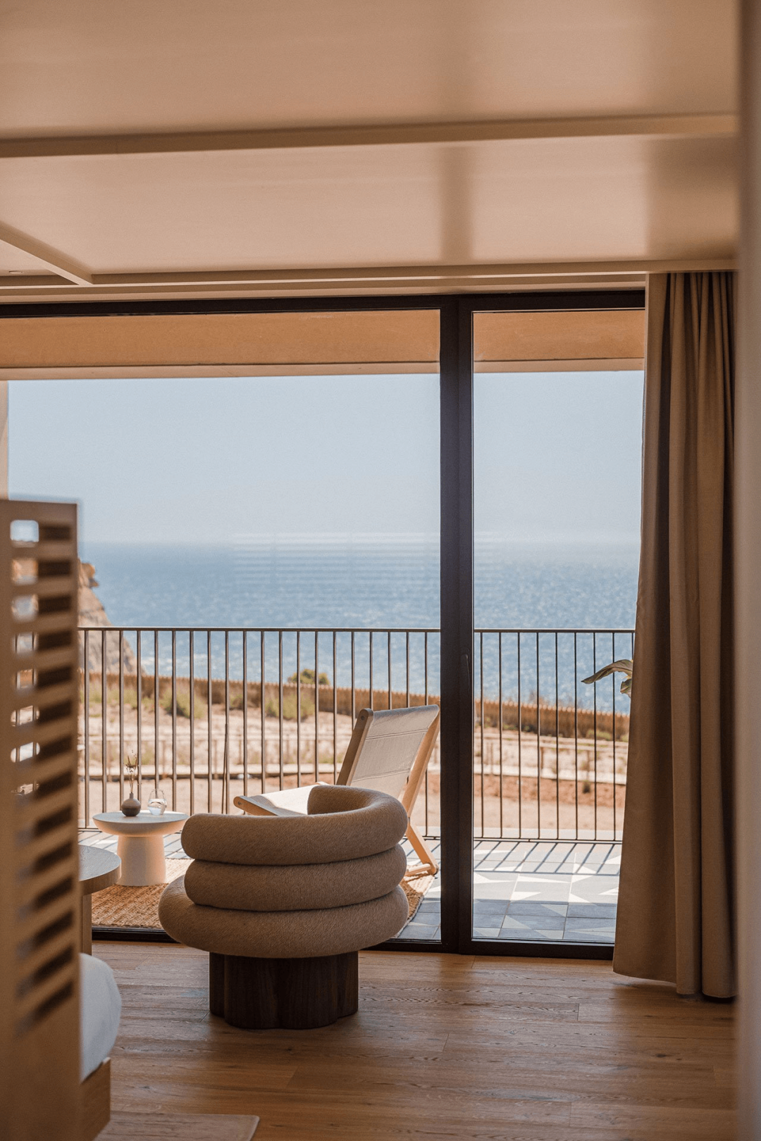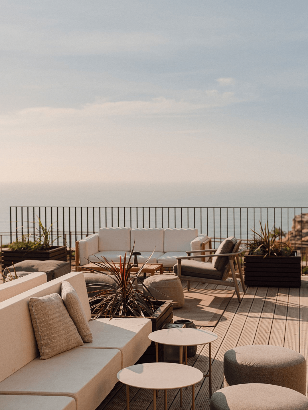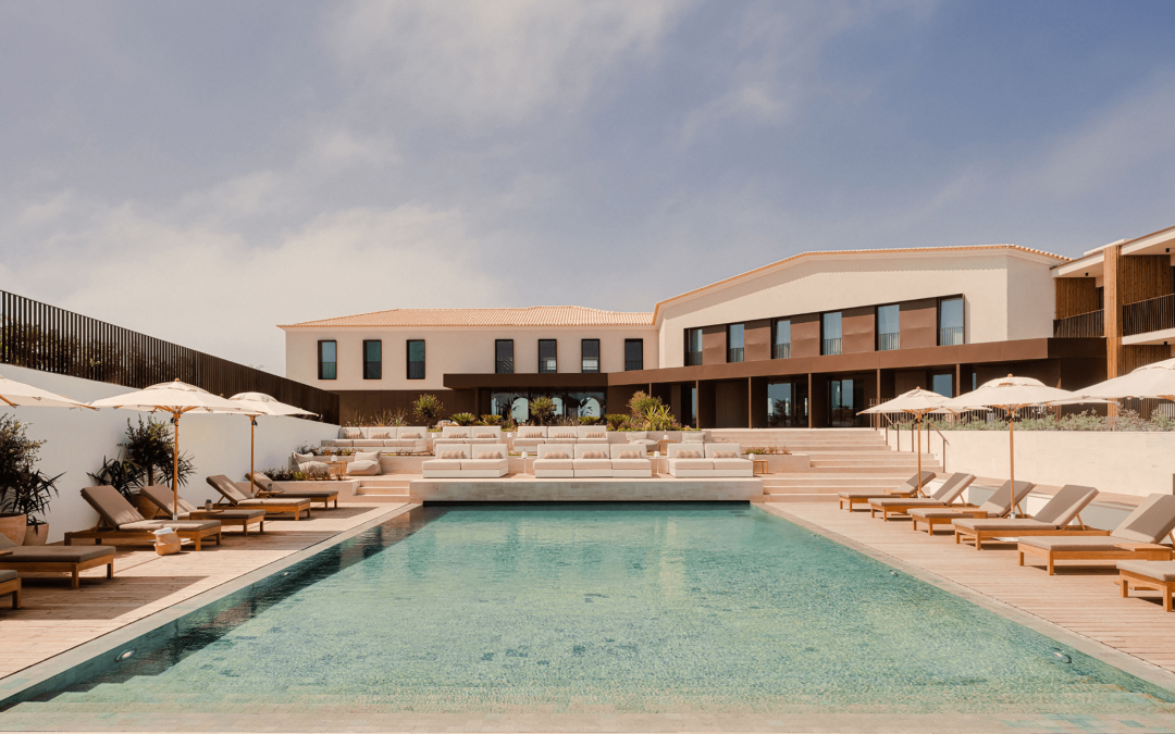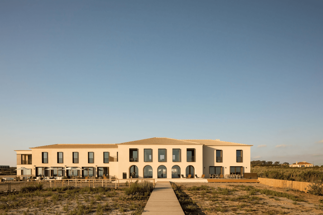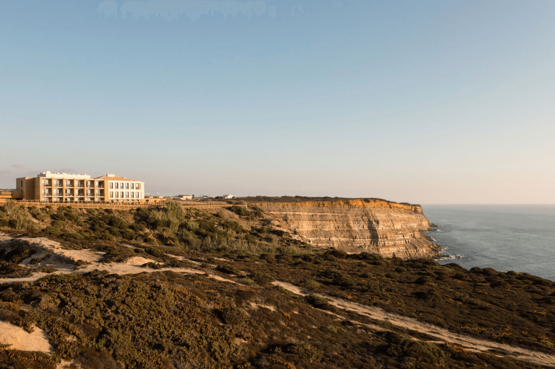 酒店坐落在里斯本以北一小时左右车程的40米砂岩悬崖顶上,拥有绝美壮阔的大西洋景色,以及海滩沙丘景观。