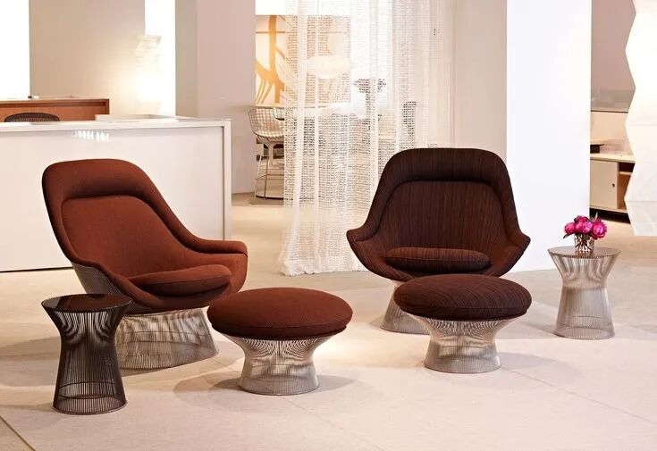 由 Warren Platner 于 1962 年设计,手工制作的 Knoll Platner 安乐椅是迷人舒适的缩影,可带或不带脚凳。