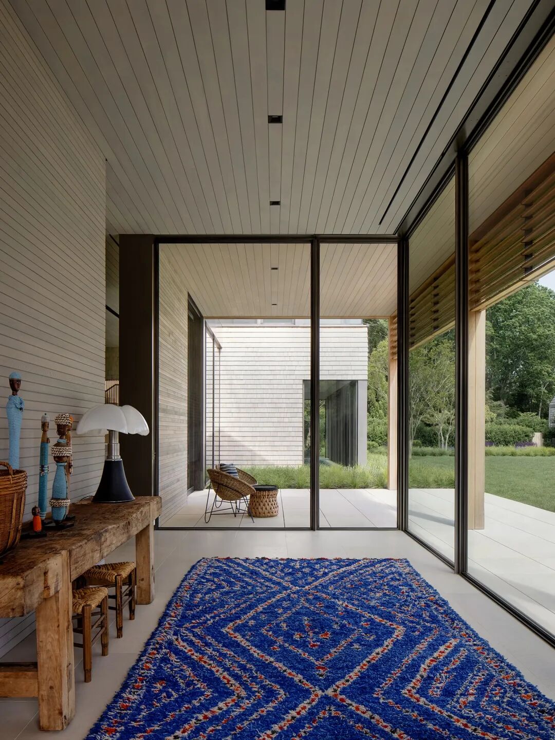 一种最小化和简单化的方法将建筑固定在其环境中,带有薄框架的开口,以避免从内部和外部分散注意力。摩洛哥地毯随处可见。