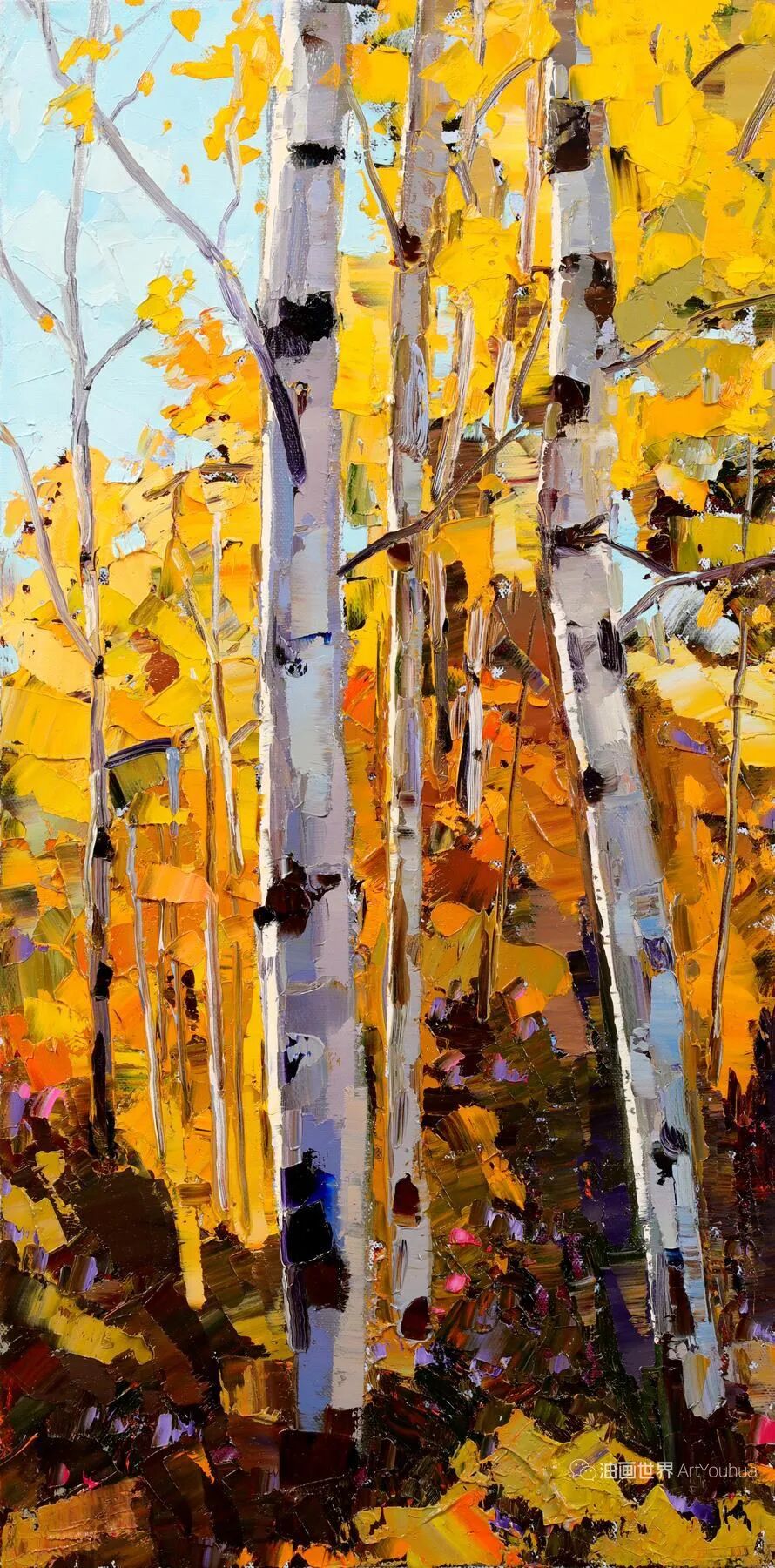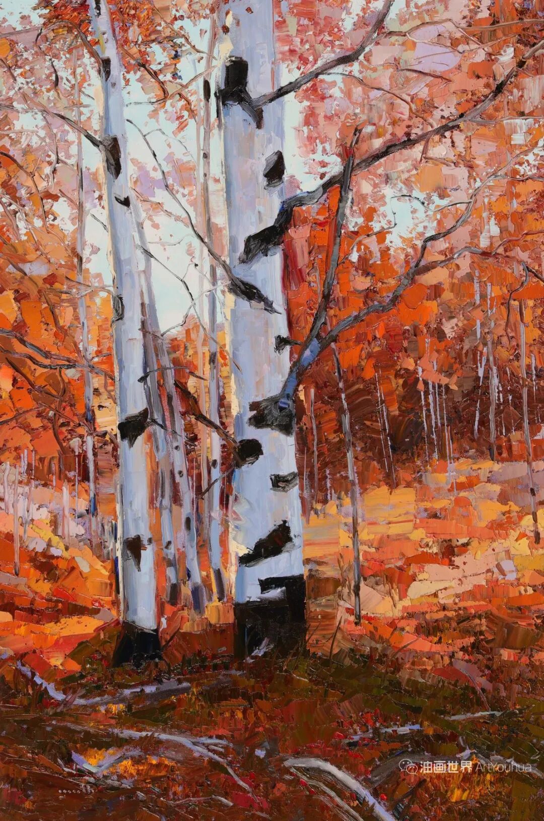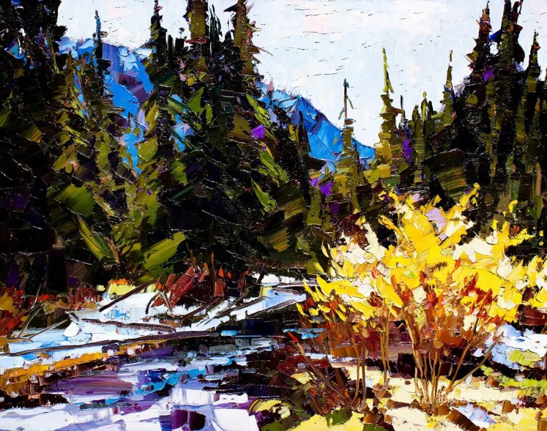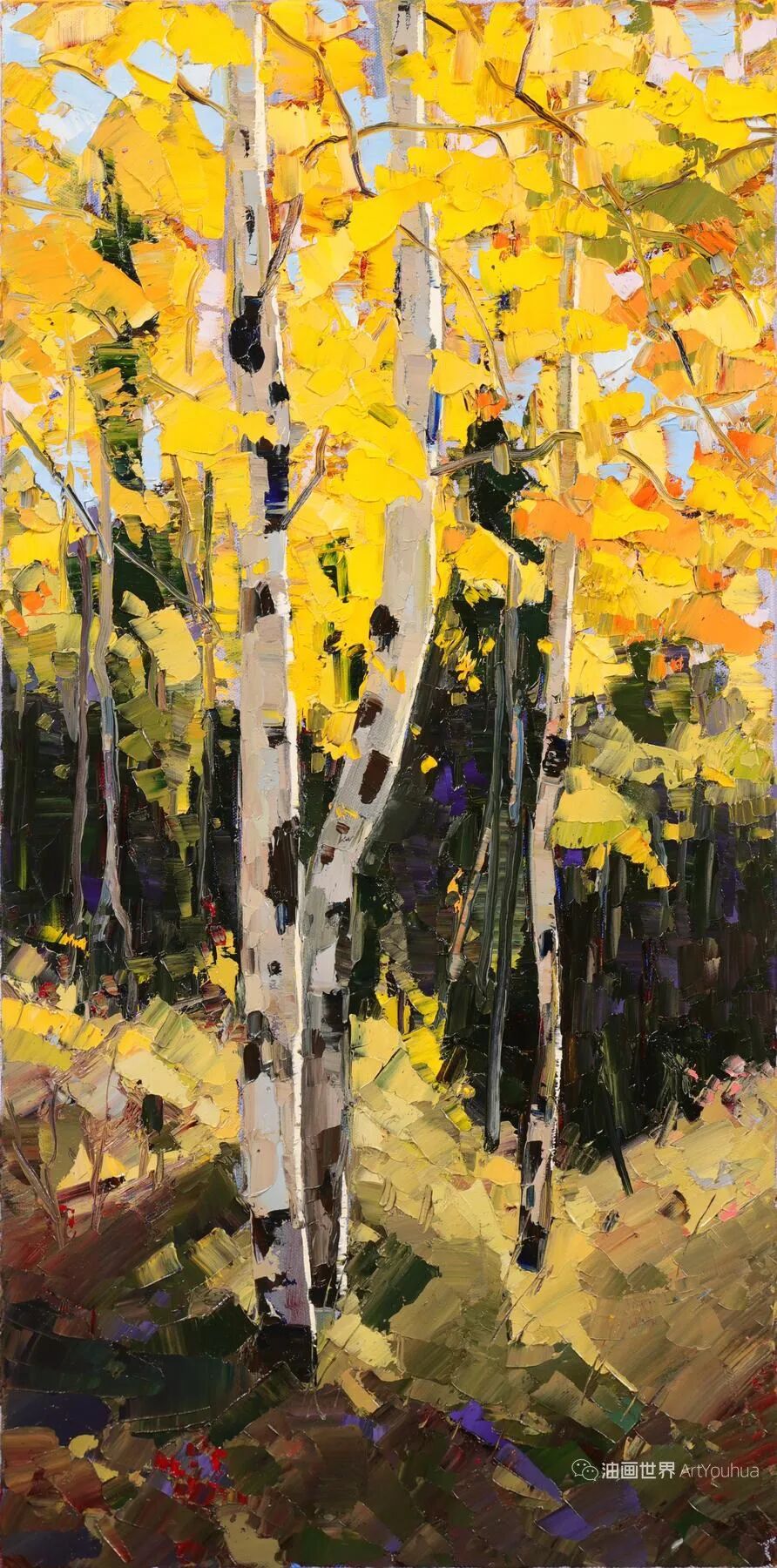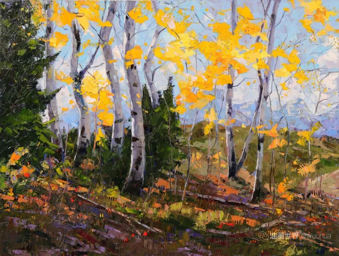我很幸运地出生在蒙大拿州海伦娜市的大天空之乡。我在成长过程中获得了对户外活动的极大热爱。我记得我父亲把我背在背上穿过鳟鱼溪,以便我们能去下一个洞。钓鱼的最佳时间总是在秋天,那时溪流低而清澈,秋色总是很壮观。每次我画秋天的杨树时,脑海中都会浮现出许多特别的记忆。