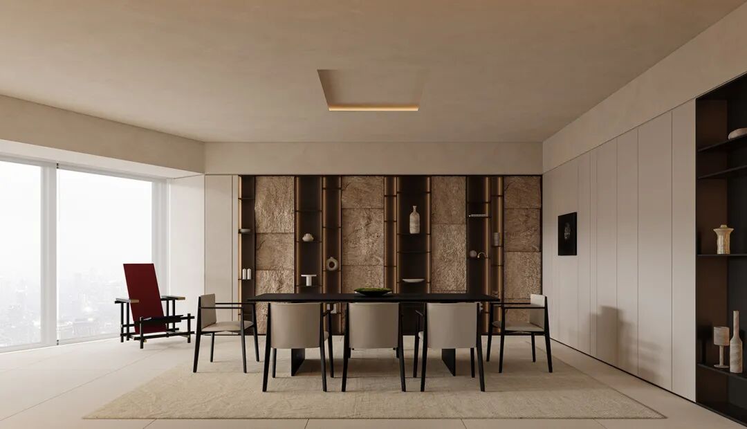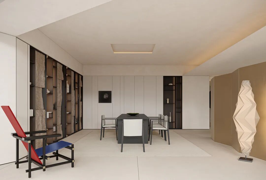 屏风与摆件的搭配,让空间充满禅韵;现代设计感的家具,让空间设计不拘泥于一种风格形式,个性的表达成为主流。
