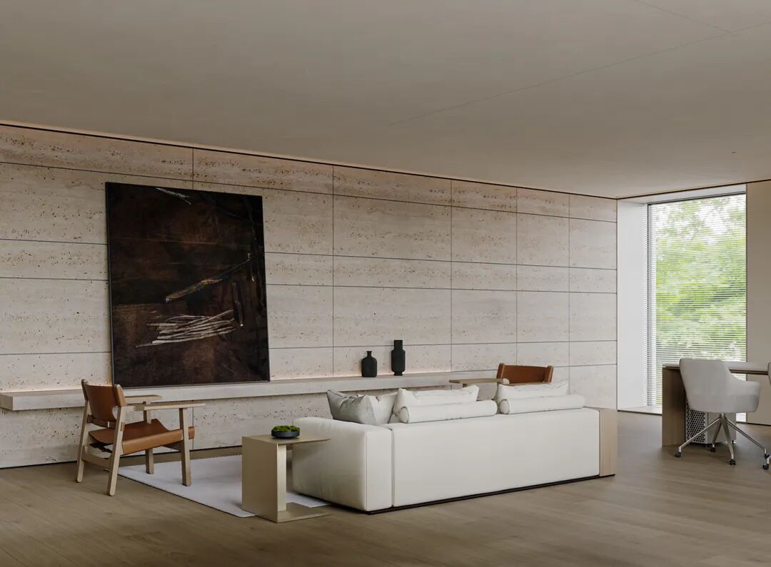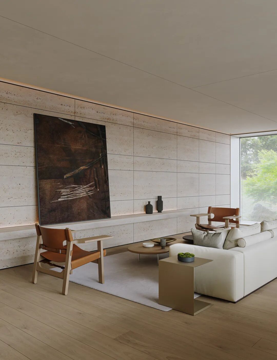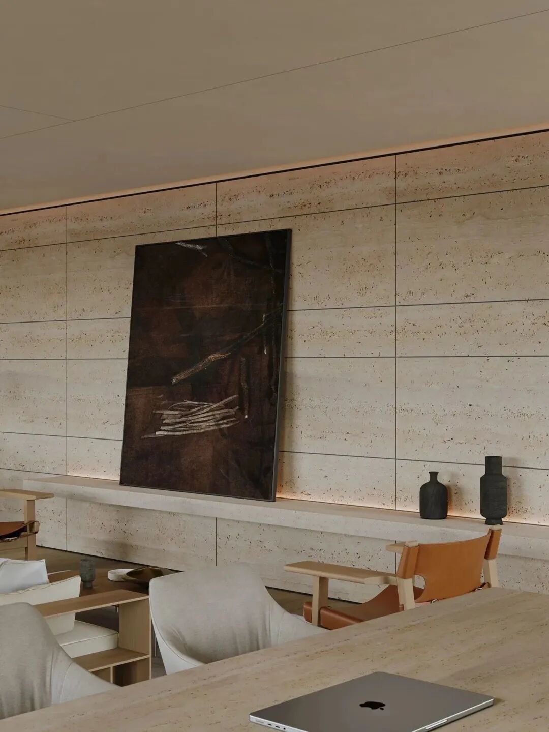 本案为乡野私宅项目,石材与浅色原木的使用,让空间更具自然之质感。