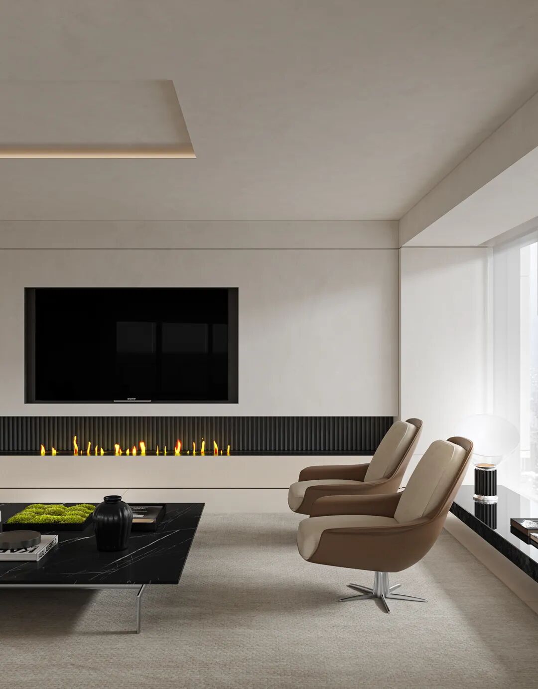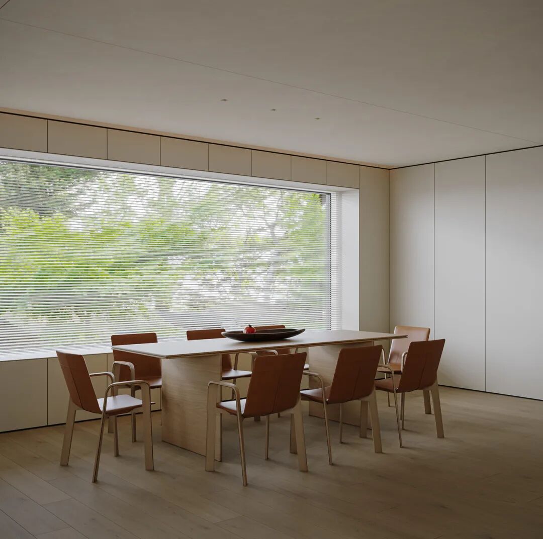 竖向和横向线条,丰富空间细节,横向长窗让窗外景色徐徐展开,生活如同优雅画卷。