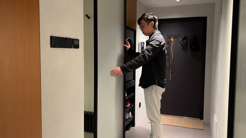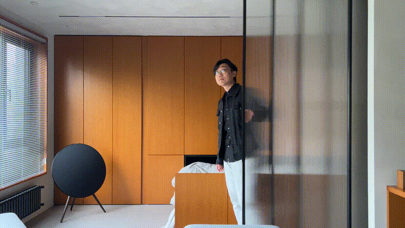 当推拉门打开时,正好将两个窗户分给两边的房间。
