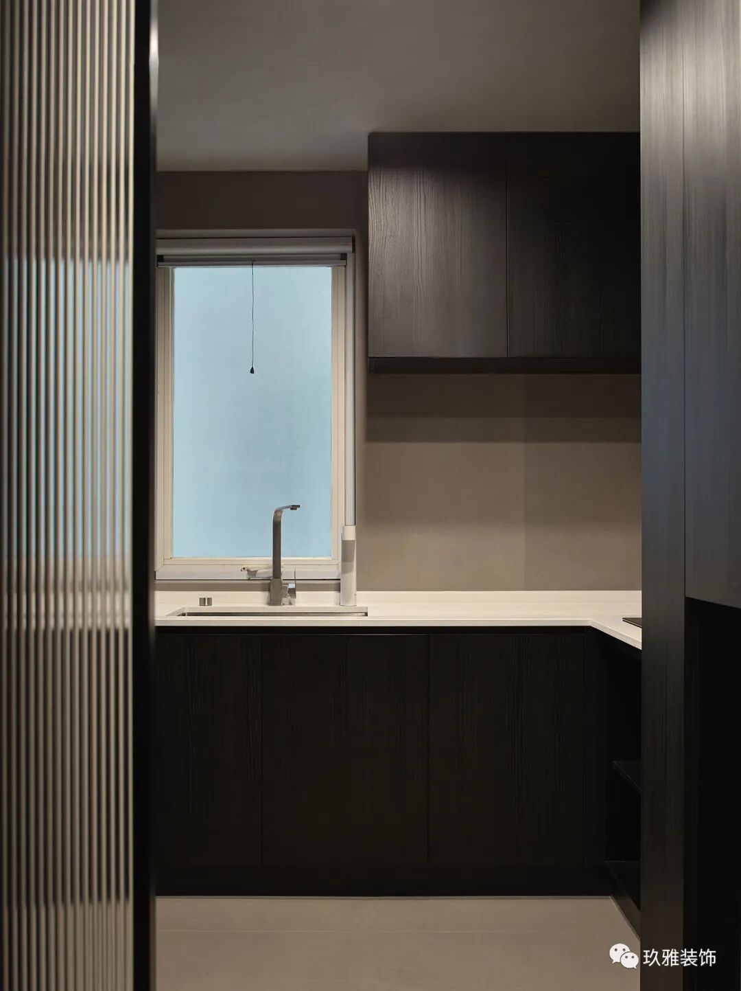 选用了超薄的内嵌水盆,龙头也被放置在了侧面。
