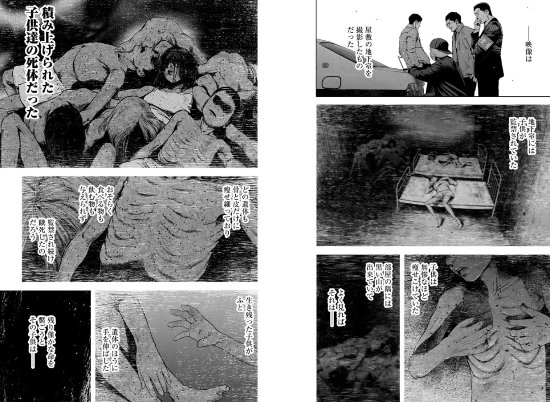 旁边的阴影处还堆积着小山般的孩童尸体,某个尚存一息孩子将手伸向死去的同伴…冴木仁听见从影片传来的咀嚼声,好似含糊的呜咽。