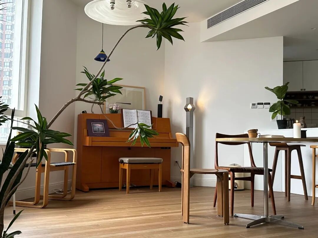 这台旧钢琴从租房时就跟着我,搬过来意外发现,这个角落好像天生就适配它的尺寸。