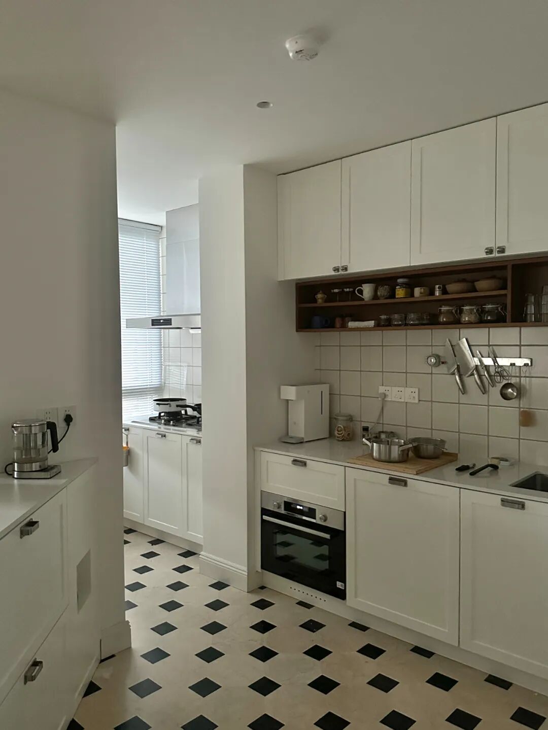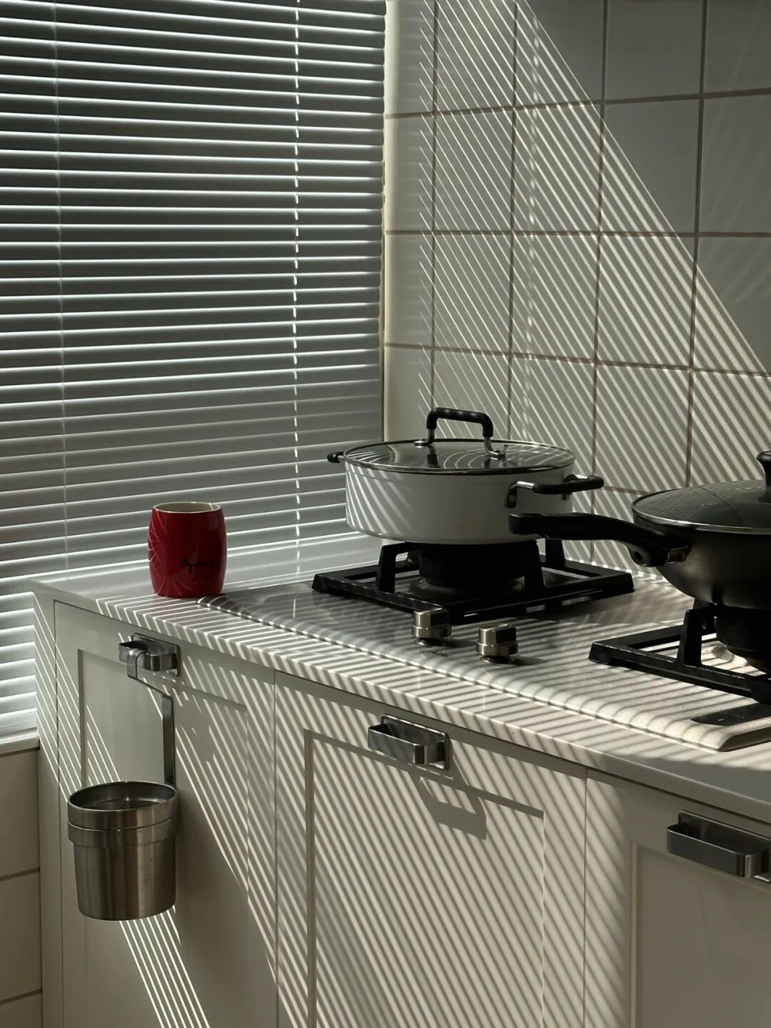 她甚至把巴黎公寓的同款地砖搬到了厨房里,阳光洒过,熠熠生辉。
