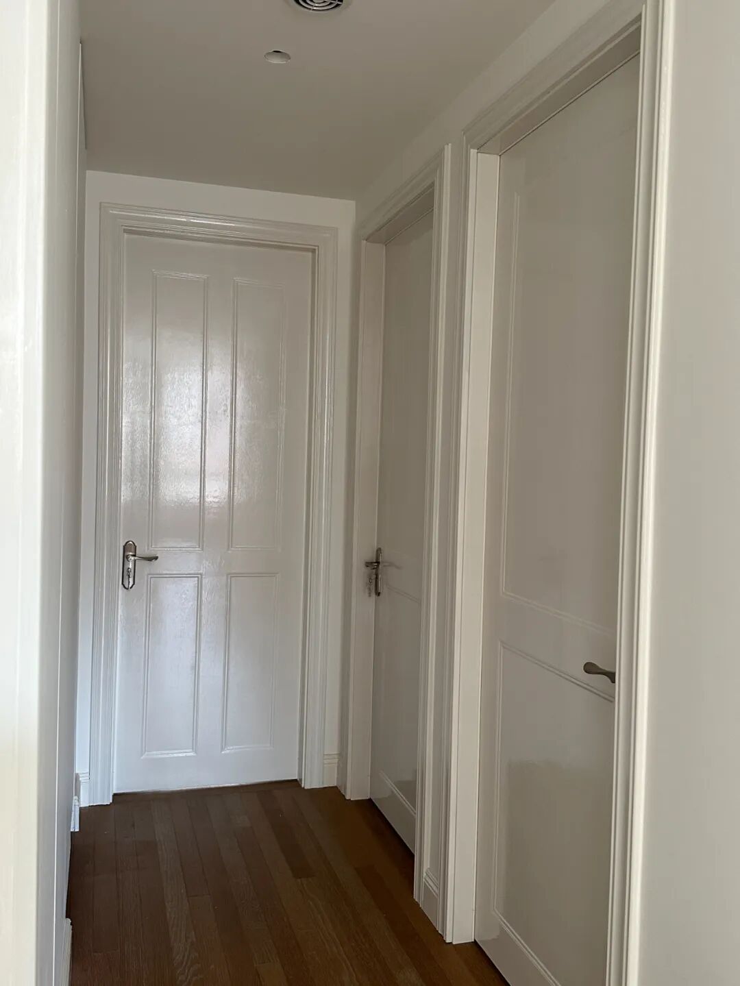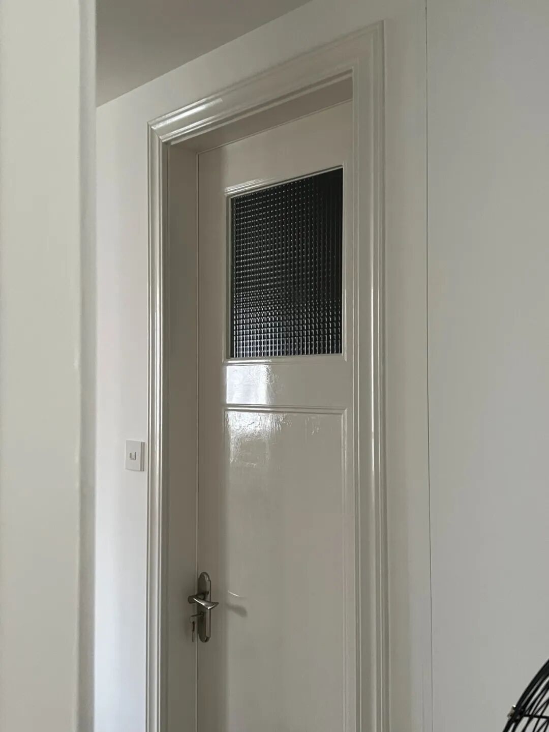 连带着踢脚线也一起刷了同一种奶白色,后来等油漆风干的过程,我有点心急,想安把手,结果又导致油漆开裂,返工!!