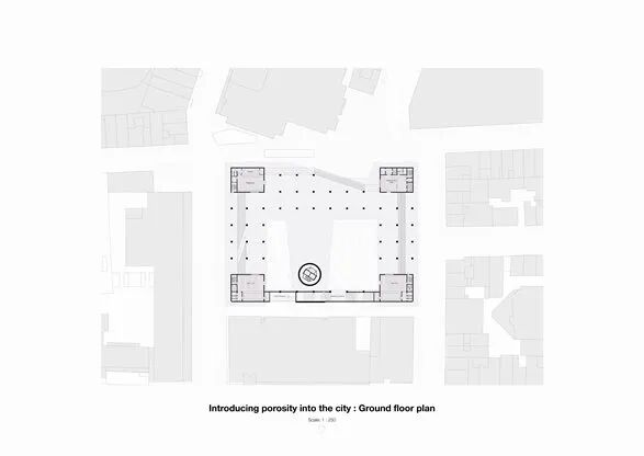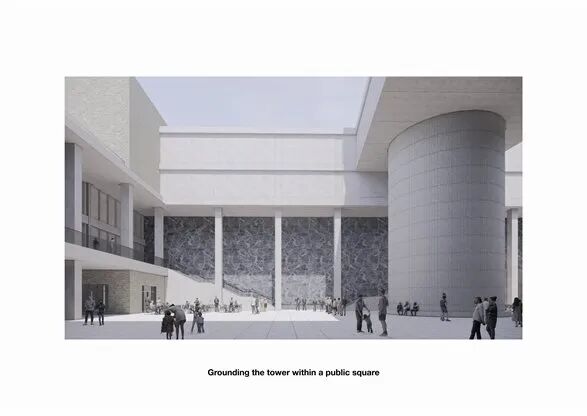 该项目提议建造一座为公共开放的混合功能的BT博物馆。为此,设计者将塔楼底部的标志性裙楼改造成一个结构,并将其作为一个活跃的公民的元素。并且,为了应对并解决当代城市不断变化的问题,因此设计者被鼓励积极思考建筑在城市尺度和人类尺度上的不同表现。