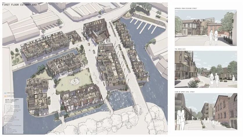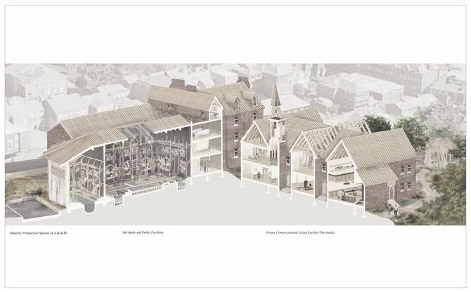 该项目位于布里斯托尔东北部的一个格鲁吉亚广场(Georgian square)上,矗立着一排格鲁吉亚梯田房屋,这些房屋自第二次世界大战中遭受炸毁以来一直处于废弃状态。该项目提议修复这些梯田房屋,并将其重改建为传统建筑和工艺学校。