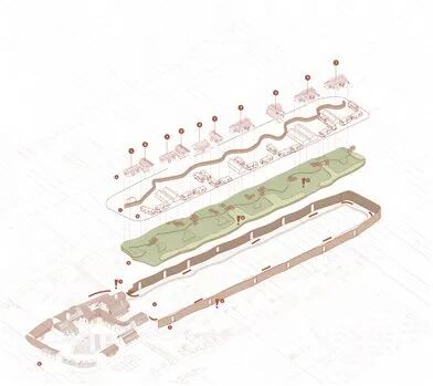 设计者所属“4A” Studio,“4A” Studio今年的主题是“lines and connection”。该studio主要从建筑地形的角度出发来进行设计。“4A” Studio中的每个项目都通过独特的受环境启发的方法来发展这一概念。