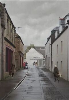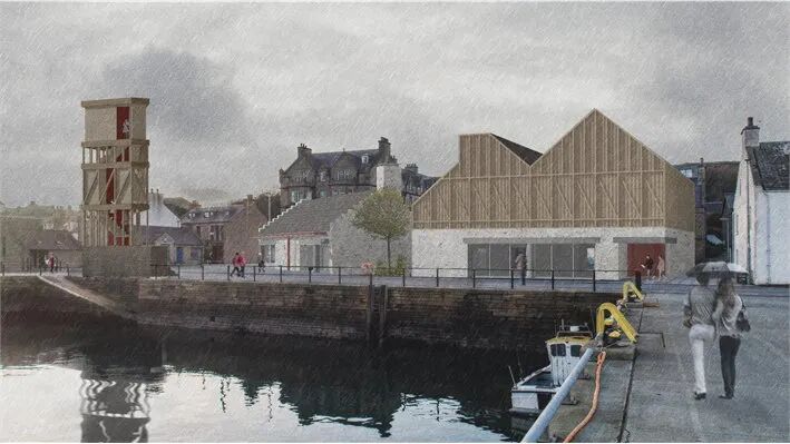 该设计旨在通过抽象出奥克尼斯的特罗姆尼斯(Stromness, Orkney)的现有身份,来开发出一种新的材料语言。Stromness码头需要一个推进式的建筑——通过历史背景和身份的平衡,并结合游客和社区的空间,使其更具有可持续性。