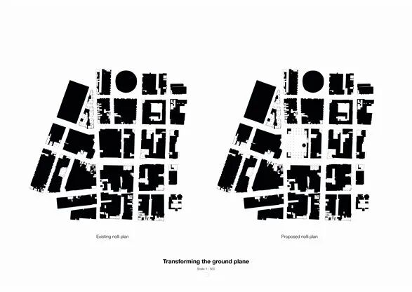 解成越来越大的碎片(称为超级街区)的过程,设计重点聚焦于大型私人建筑将公共意图投射到城市中时出现的问题。