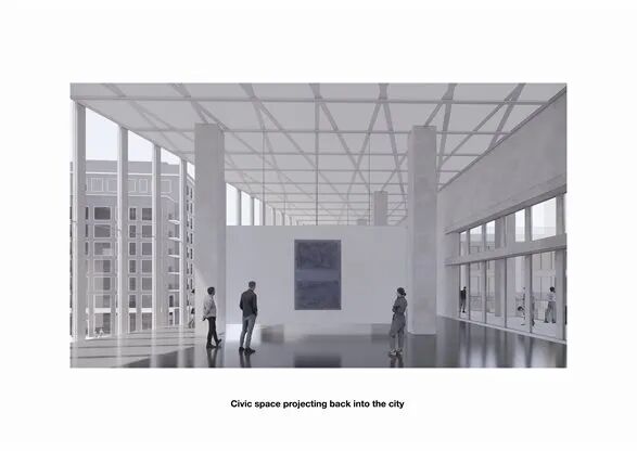该方案整合了新的公共绿地,从庭院到屋顶花园,为爱丁堡现有的公共空间增添了新的元素,也为人们创造了见面、社交和享乐的空间。这使得建筑内的所有活动都可以对外进行展示,从而创造出一个“向所有人开放”的建筑。