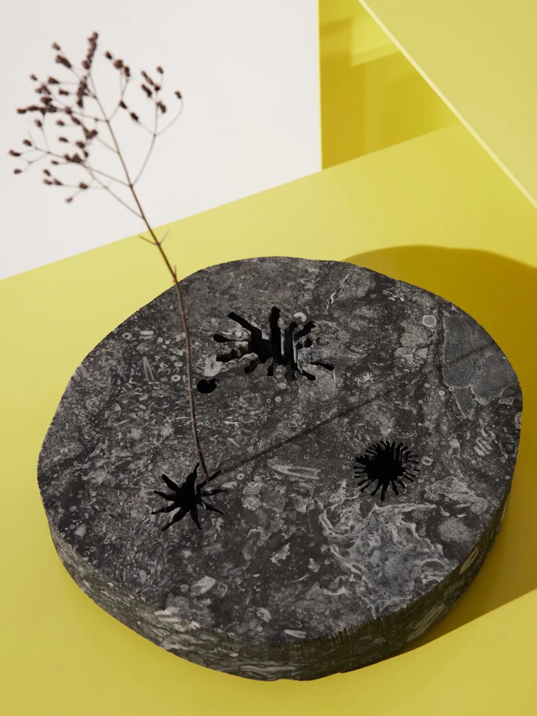 Mare 2022 是由五个花瓶和托盘组成的系列。得益于采用的挪威石料,每件单品都有自己独特的品质。这些物件使用手绘图,将植物和岩石融为一体。仅使用水射流切割机,并尊重材料原有的形状,把对岩石固有特性的干扰降至最低。最终形成带有缝隙和空洞的各种有机形状,可插入从单根花茎到大花束不等的植物。