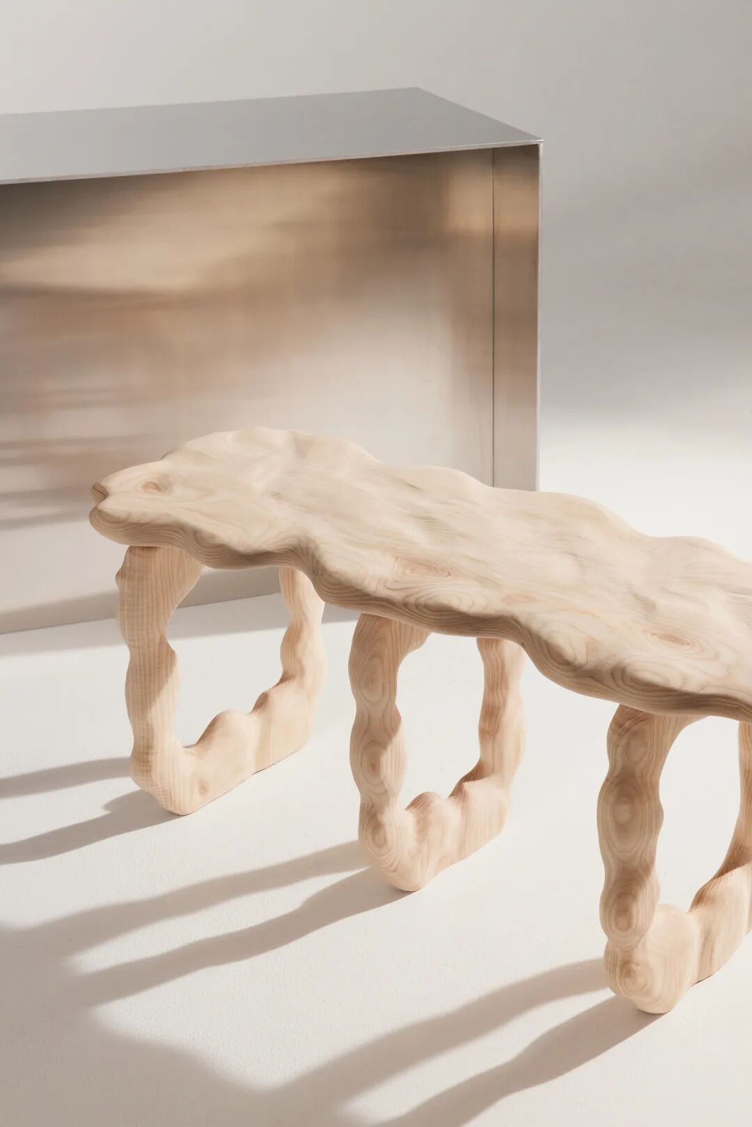 Brent是一系列形式琢磨不定的城市枫木家具,来自挪威奥斯陆索菲恩伯格公园。雕塑桌的外感形状几乎像液体,每张桌子都有自己独特的配置和形式。表面经过火焰处理以形成穿透性的饰面,这是一种保护木材免受外界因素影响的古老技术,在延长材料寿命的同时保持可生物降解性。枫木来自城市锯木厂,该锯木厂与城市树艺师合作,对倒下的树木加以利用,以解决当前城市树木管理中的环境废料和价值损失。
