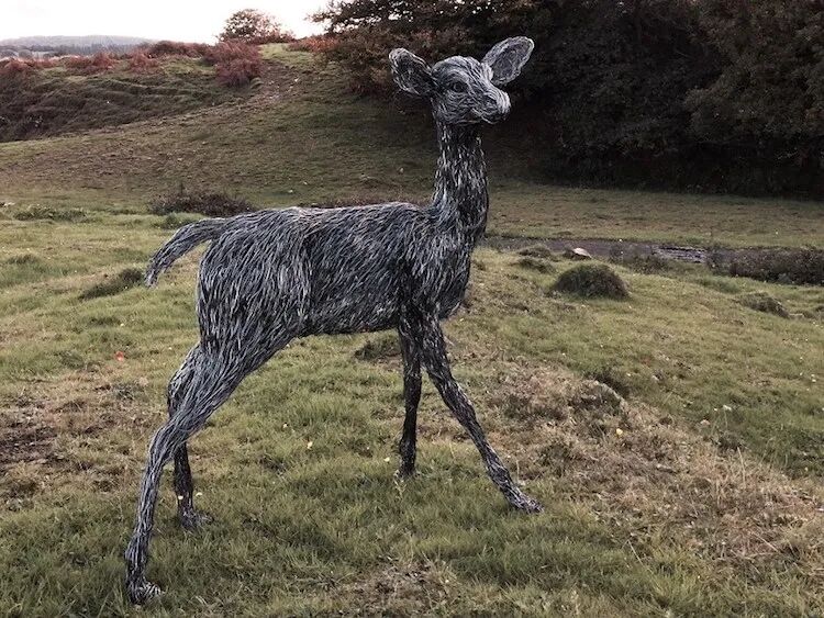当坎迪斯·比兹的动物雕塑被放置在真实的环境中,它们看起来更加真实了,好像与周围的风景自然契合。好了,接下来我们就一起欣赏一下这位勇敢转行的女艺术家,用金属丝缠绕而成的可可爱爱的小动物雕塑吧。