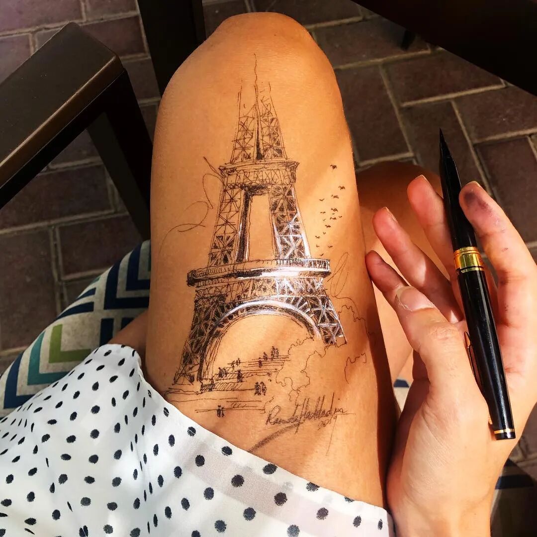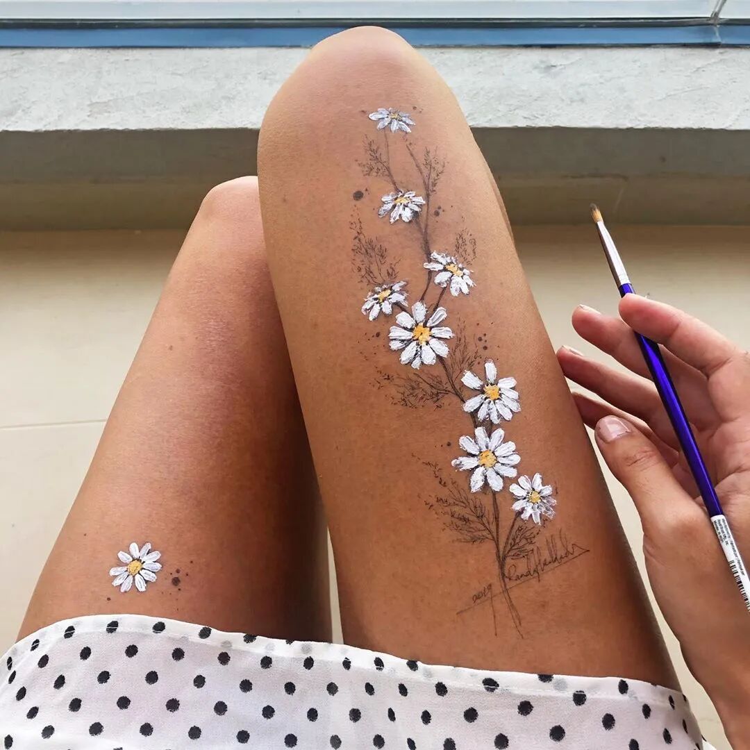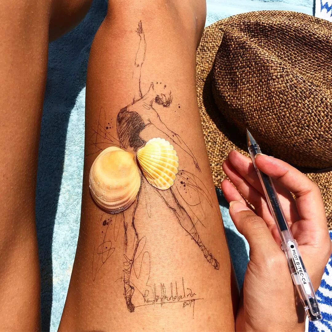 在腿上画画你要是问我用什么笔 我想最便宜的就是圆珠笔和针管笔了 当然也可以丙烯、水粉 油画和油性笔等小编就劝你们不要试验了 因为太难洗