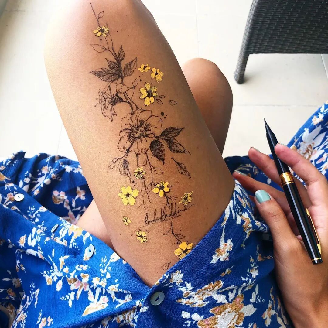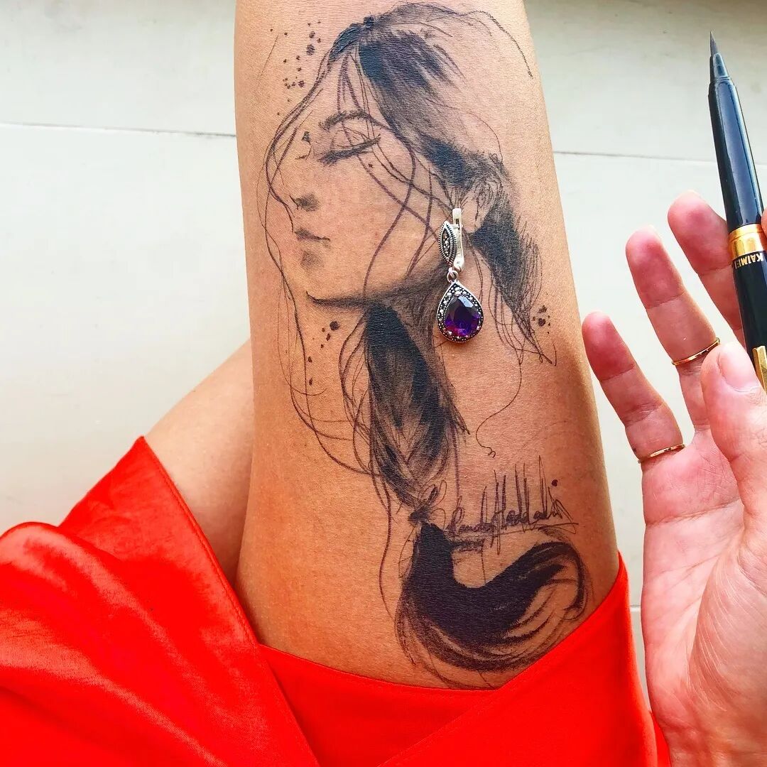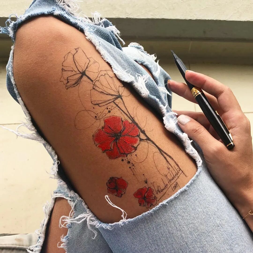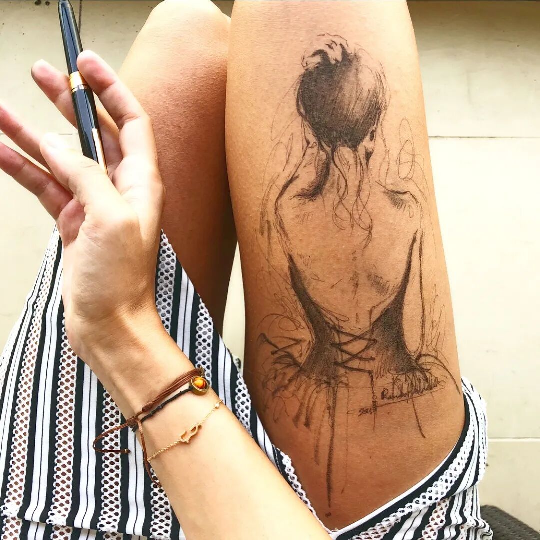 在腿上画画你要是问我用什么笔 我想最便宜的就是圆珠笔和针管笔了 当然也可以丙烯、水粉 油画和油性笔等小编就劝你们不要试验了 因为太难洗