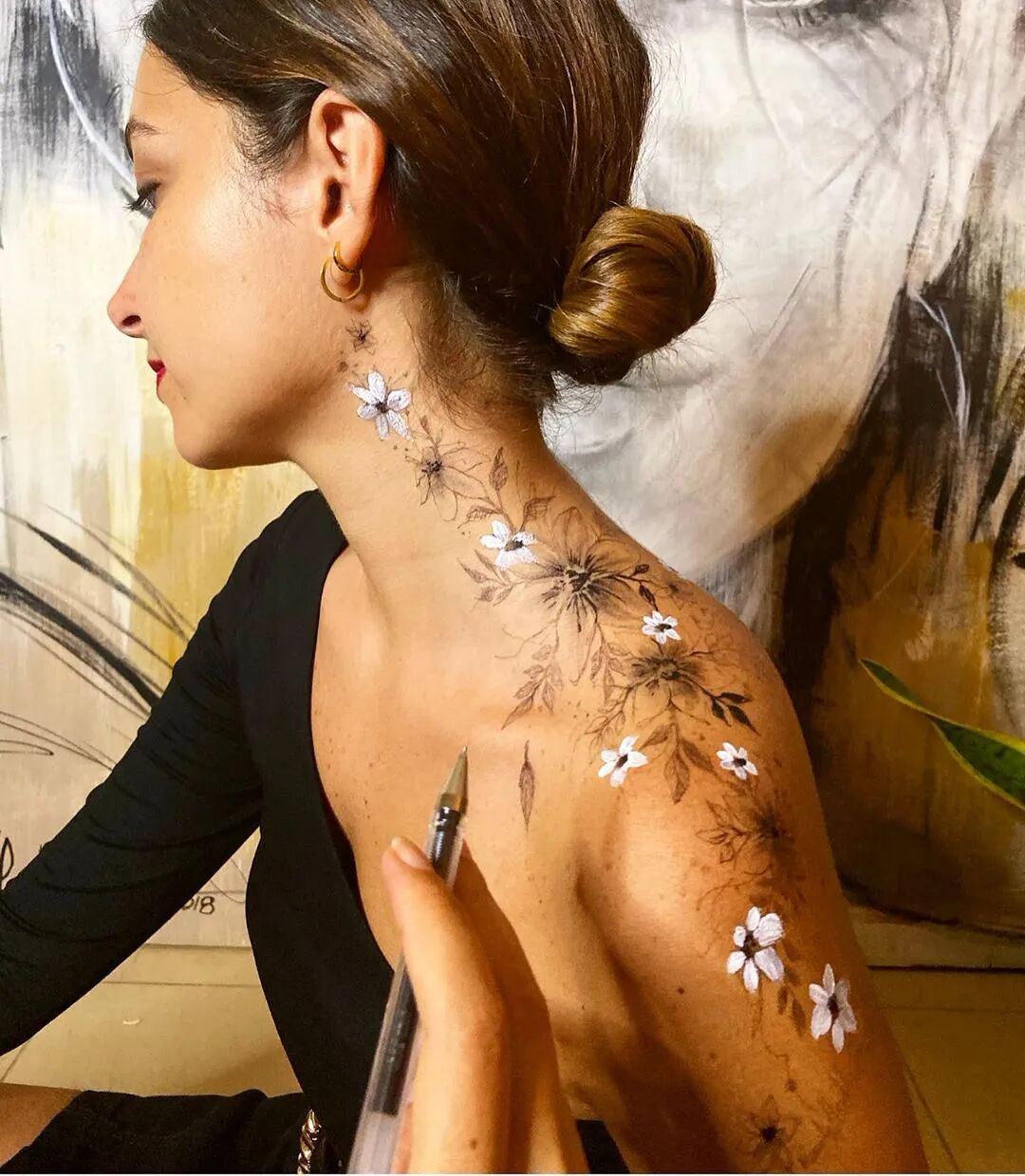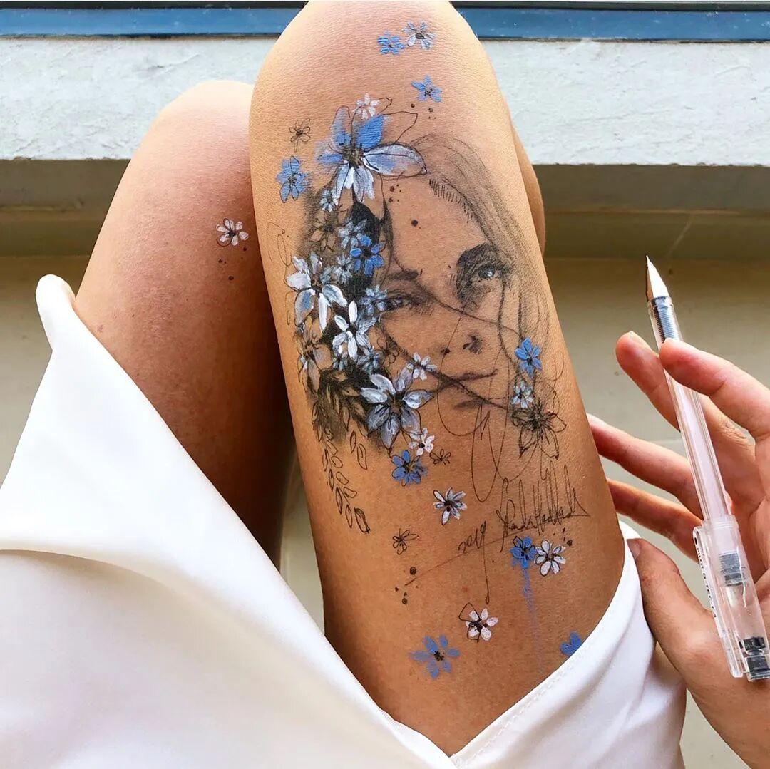 教授对于她画技的肯定 给了她莫大的鼓励和自信 于是她开始不满足于偷偷的在腿上作画 也开始在手背上作画 她的画作也收获了一些同学和朋友的喜欢 会请她帮忙在后背、肩膀上等画画
